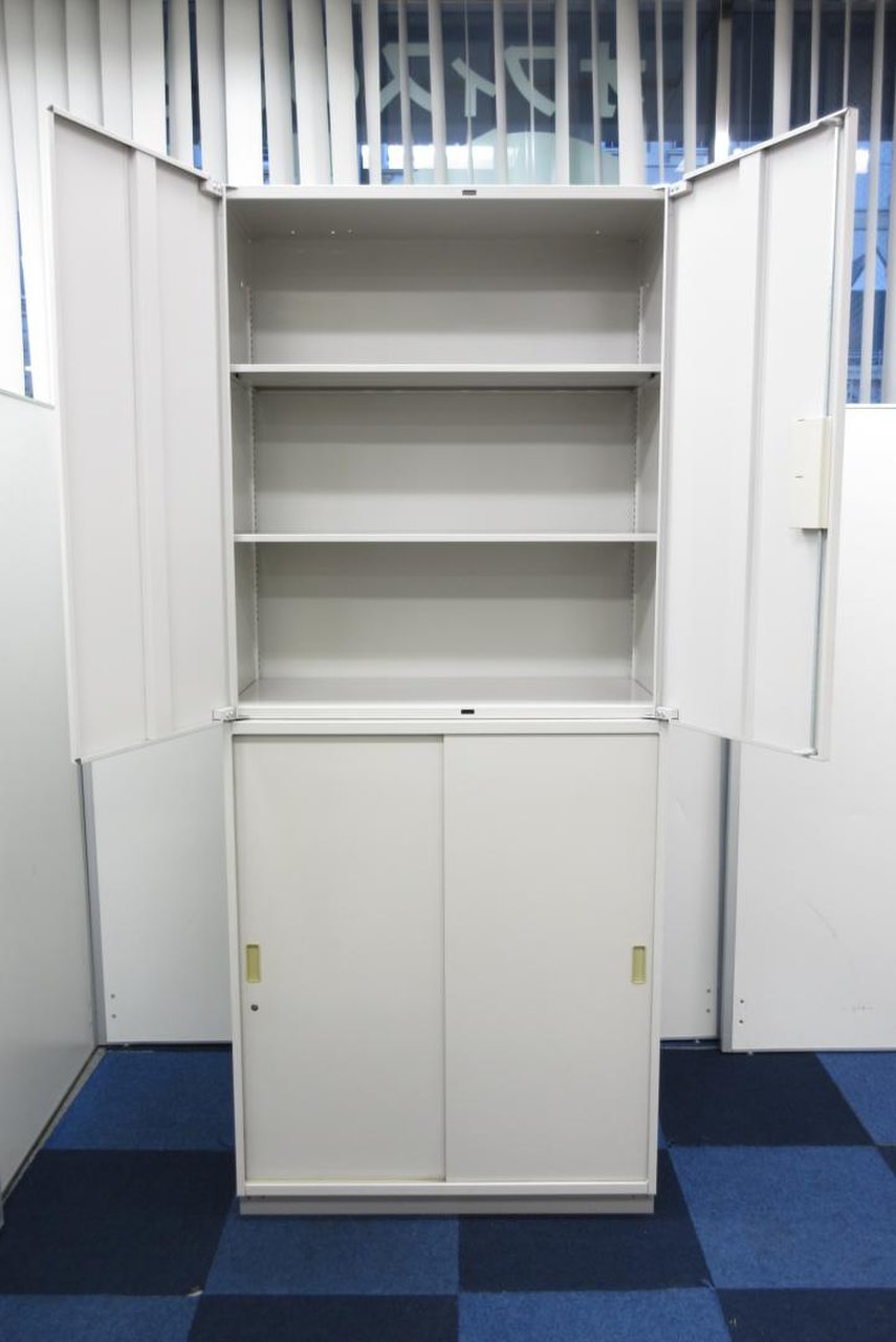 引き違い書庫入荷!!【定価約14万円!!人気の三枚引き違い書庫の上下セット商品の入荷です!!横幅800mm!!】■イトーキ■シンライン