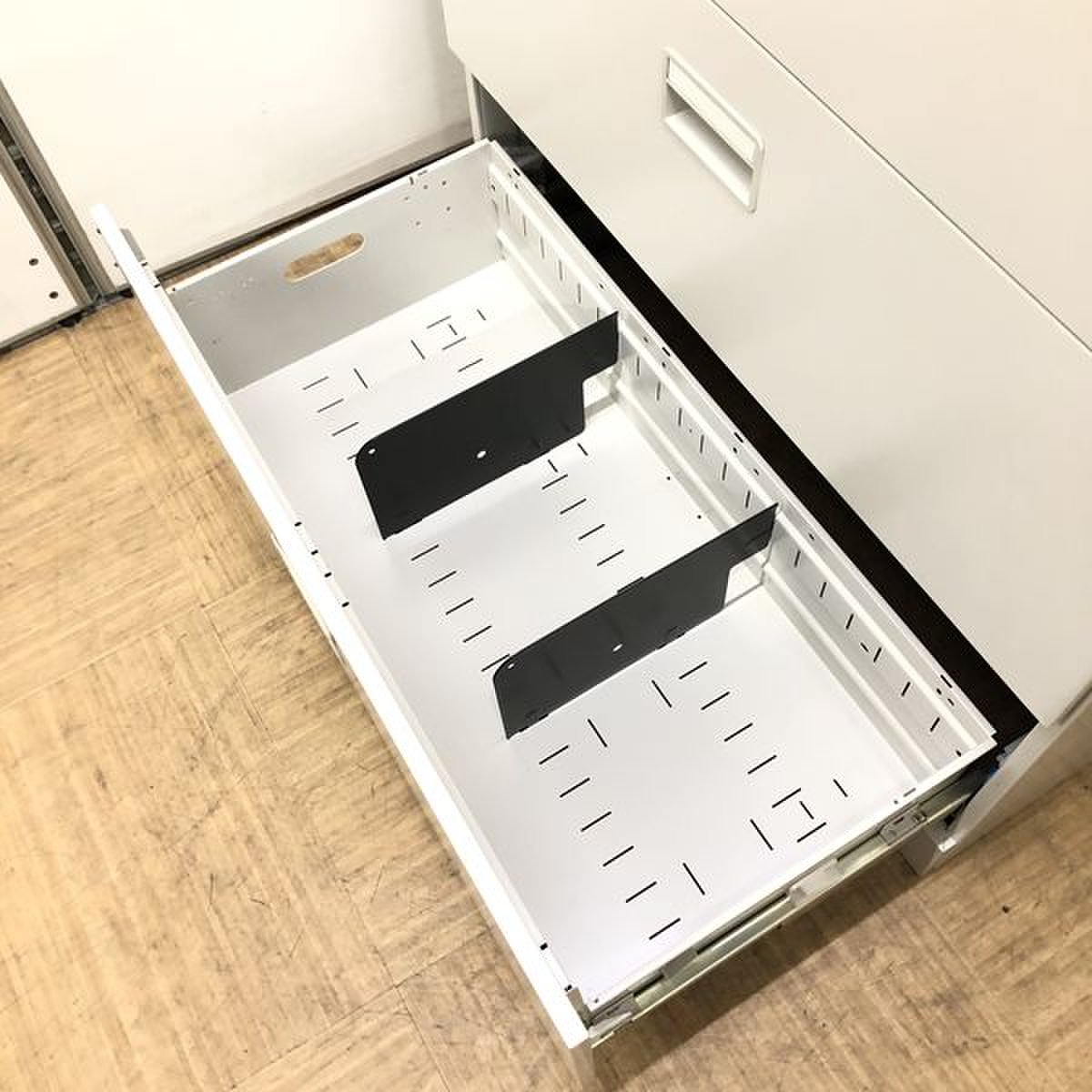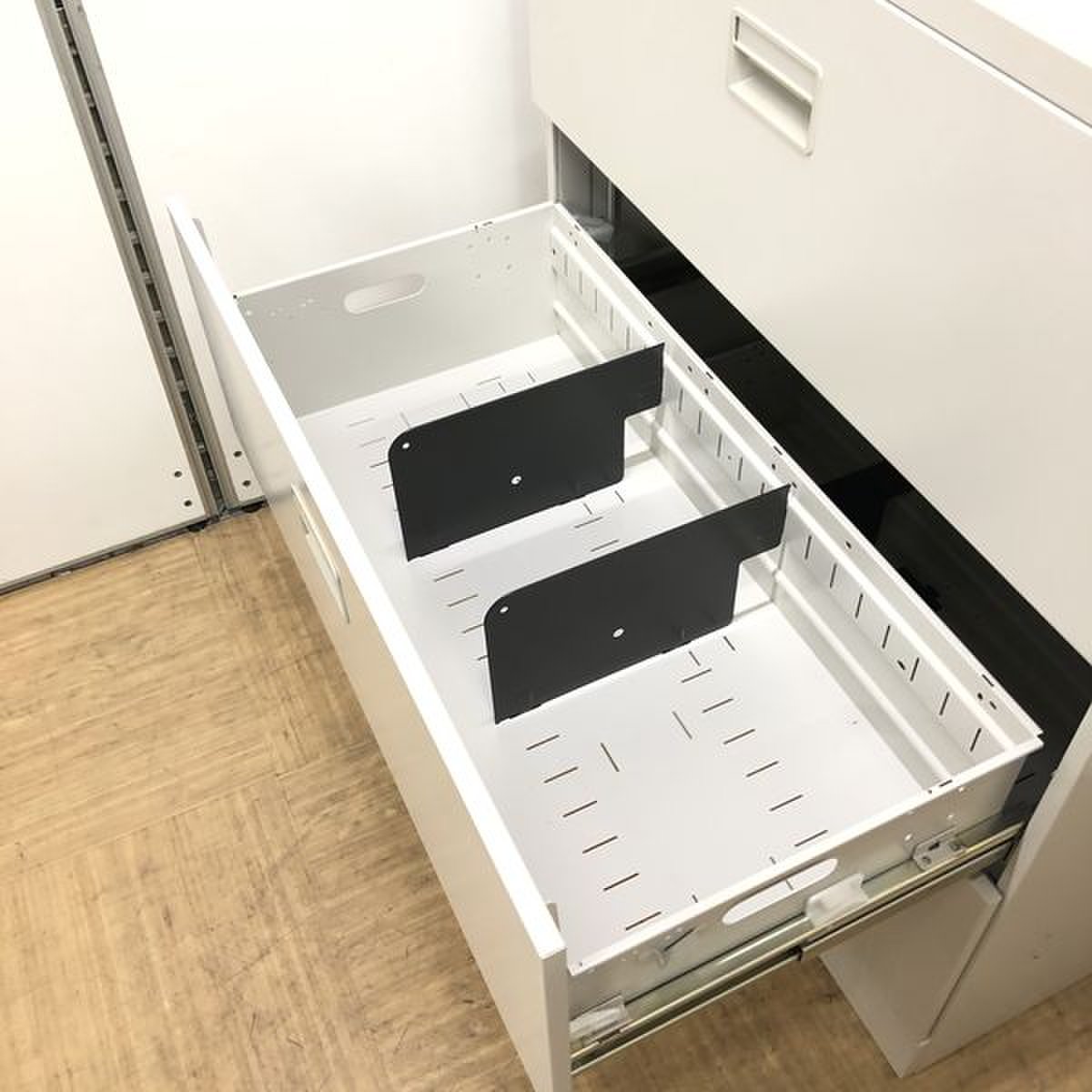 - 一部不具合ありそ引出の開閉不可、施錠不可、棚板無しといったの書庫の本来の効用を果たすための機能以外の一部が使用不可(例、扉、引出の開閉がしづらいなどがある。 )