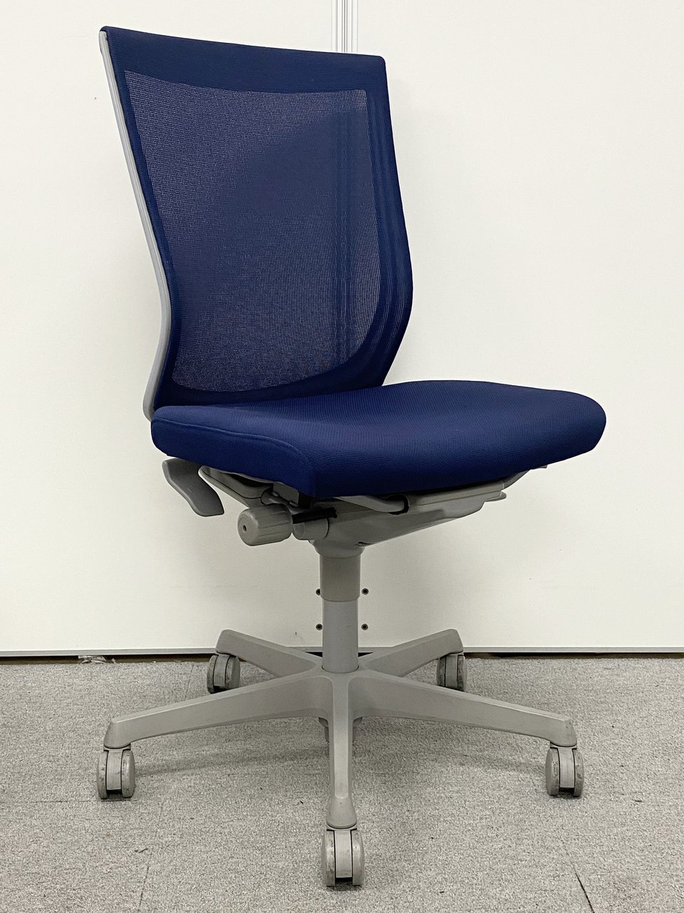 【肘無】【状態A】 【蒸れにくいメッシュ生地!】背もたれ広めでゆったり座れます! オカムラ/エスクードメッシュ/ブルー