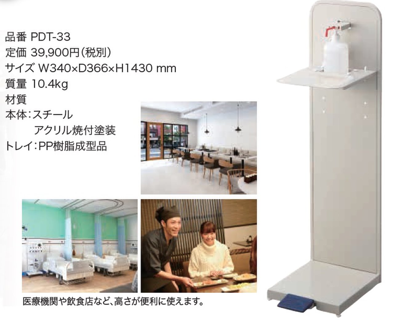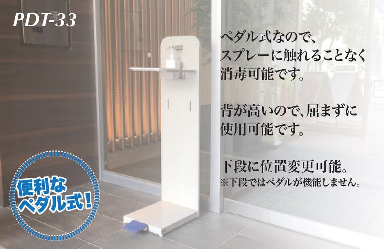 ペダル式なのでスプレーに触れることなく消毒可能です。