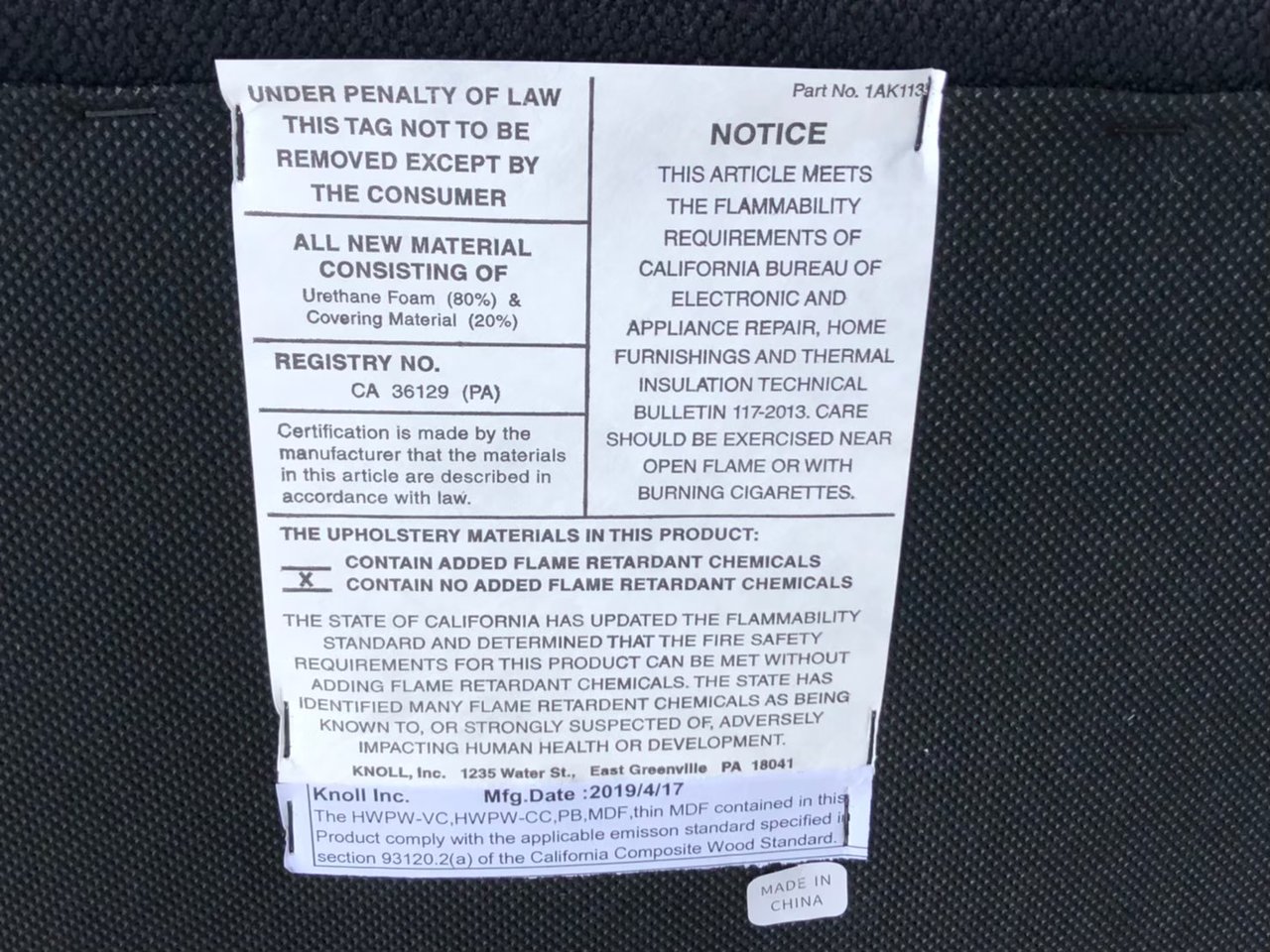 KNOLL社の正規品、張地がデンマークのテキスタイルメーカー