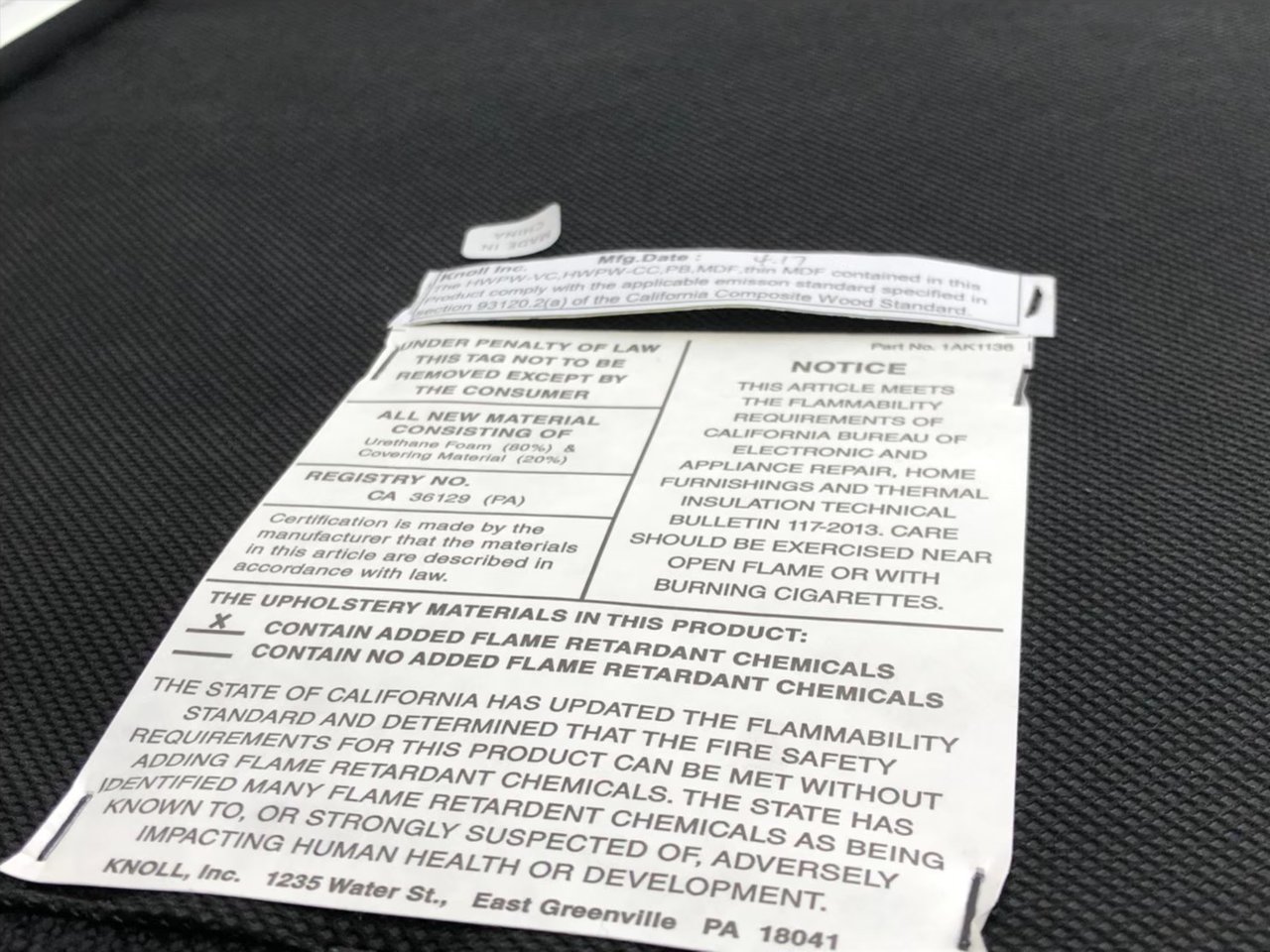 KNOLL社の正規品、張地がデンマークのテキスタイルメーカー