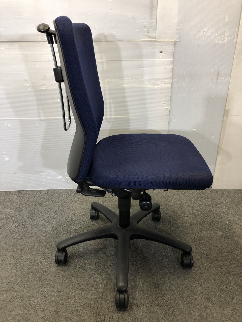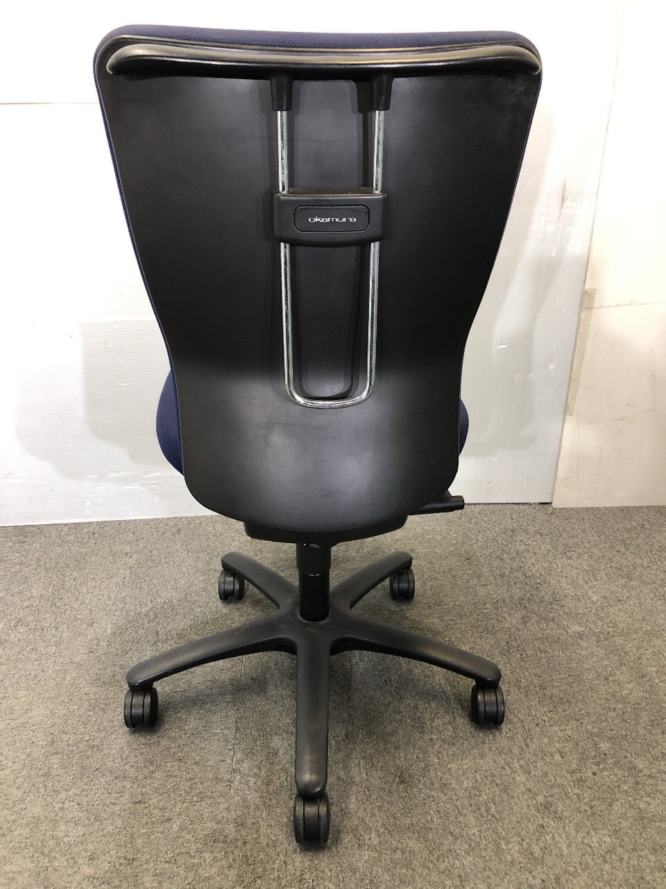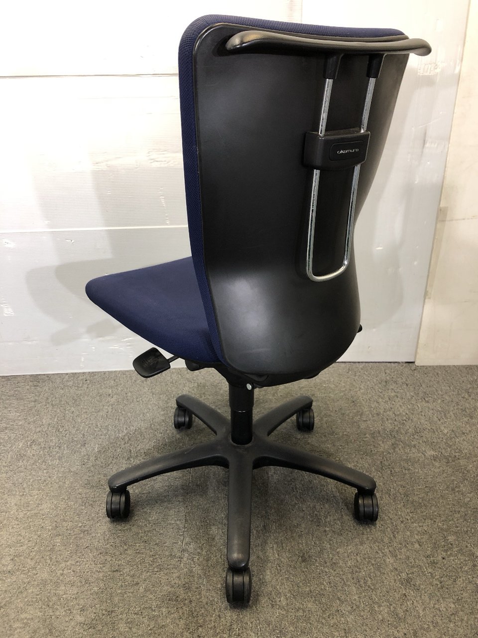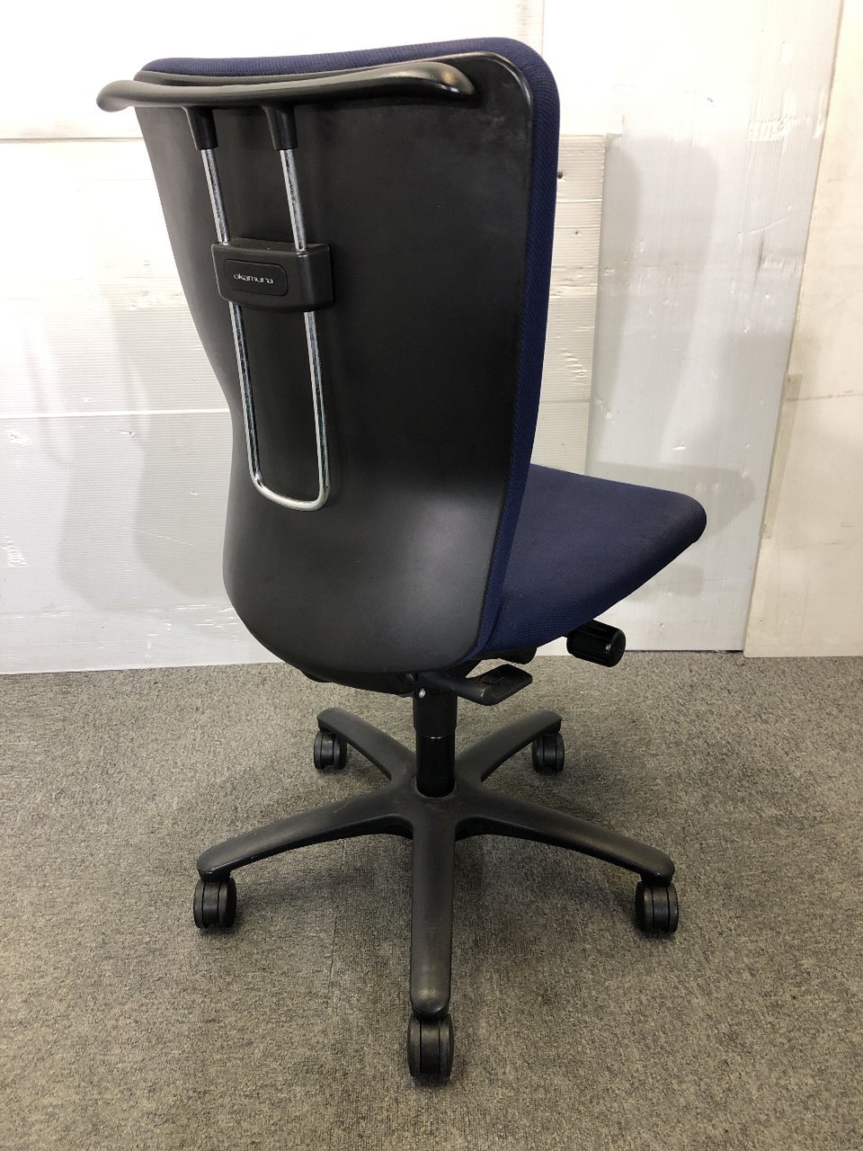 【肘無】【ローコストチェアの決定版!】 オカムラ/カロッツァ/ブルー/コートハンガー付き