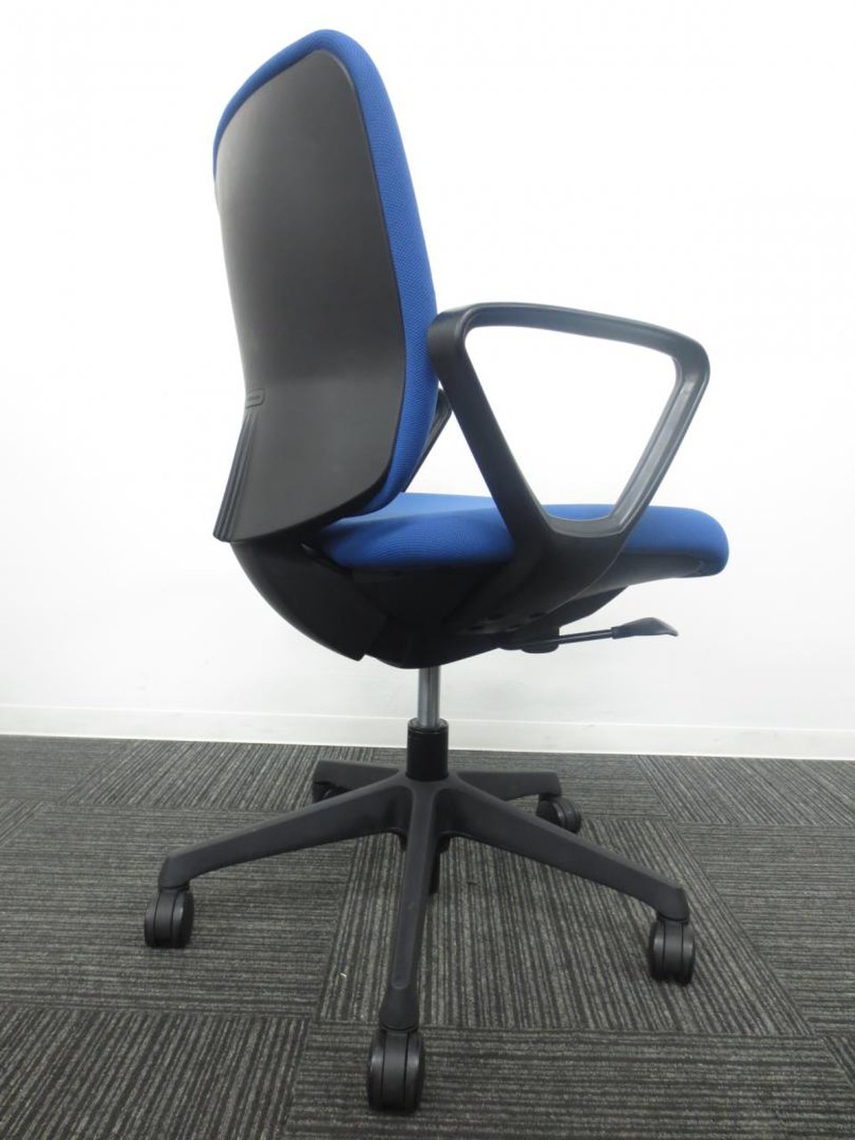 【定番商品】オカムラ製 CG-R ブルーカラー 肘付きローバックチェア【鮮やかなブルー】【固定肘】