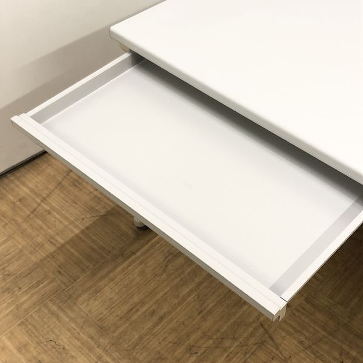 天板下には薄い引出しも付属しており