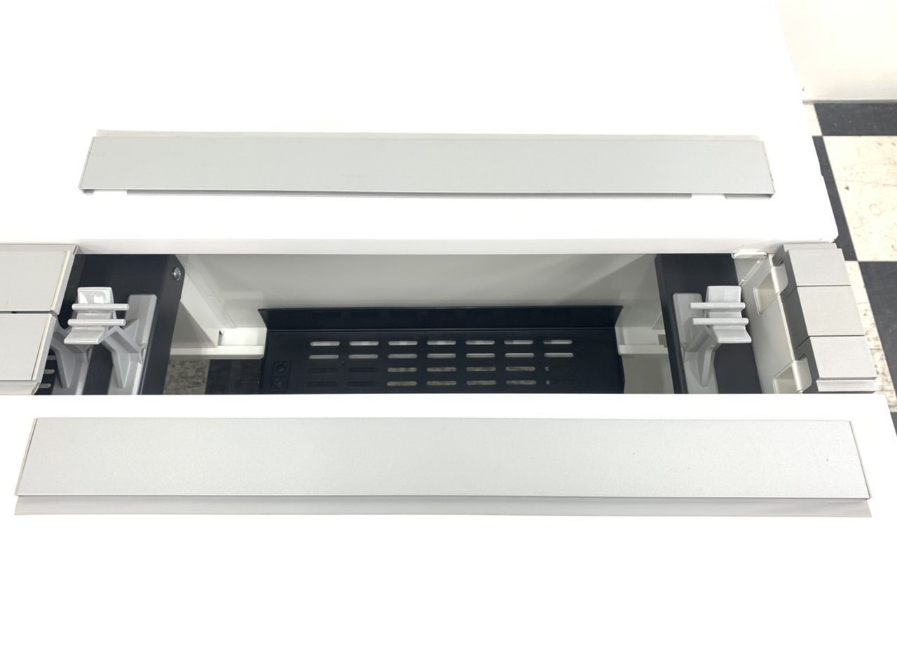 デスク中央部には配線カバーがあり、