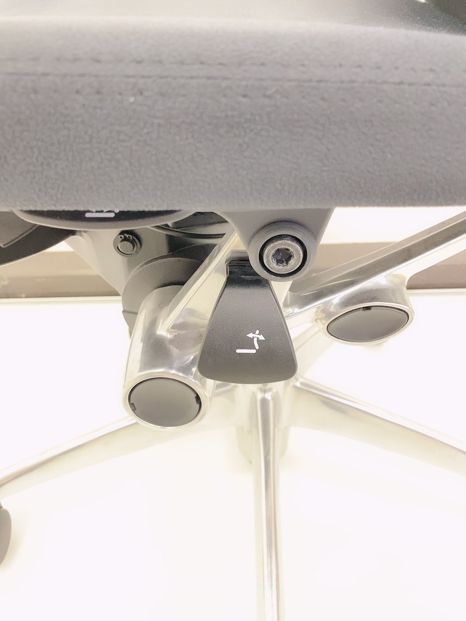 - 身体にフィットする自然な動きを実現するアンクルチルト®リクライニング。座面左下のレバーでお好みの角度に固定できます。 リクライニングの強弱は無段階で調整可能です。