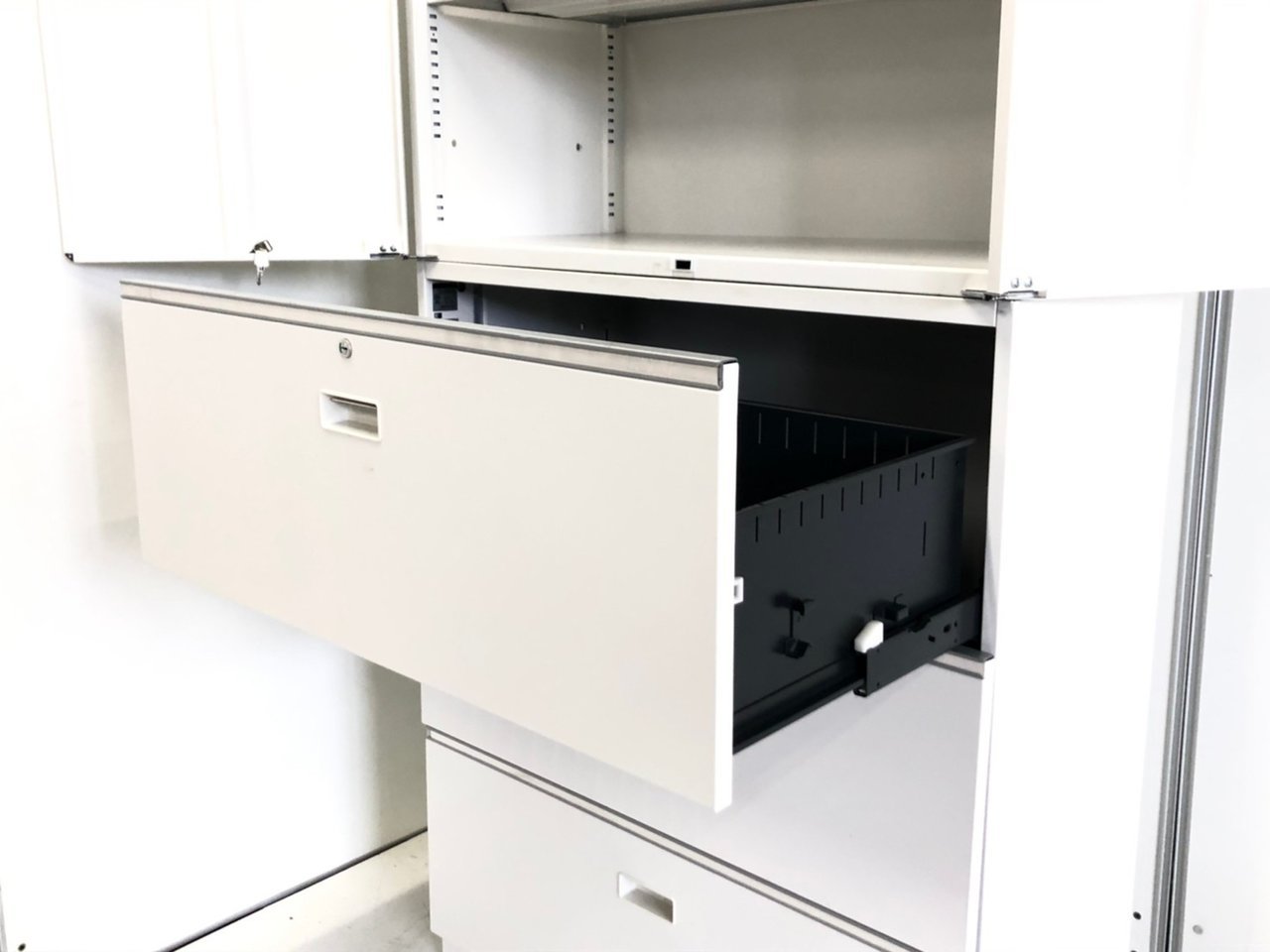 【レア】3連スライドホワイト書庫と3段ラテラルのセット