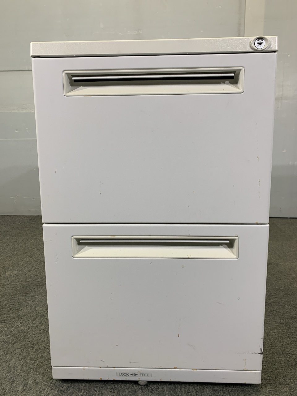 - 一部不具合ありその脇机・ワゴンの本来の効用を果たすための機能以外の一部が使用不可な状態。(例、引出が開閉しづらい、 キャスターロック機能使用不可、ラッチ不良 等がある。)