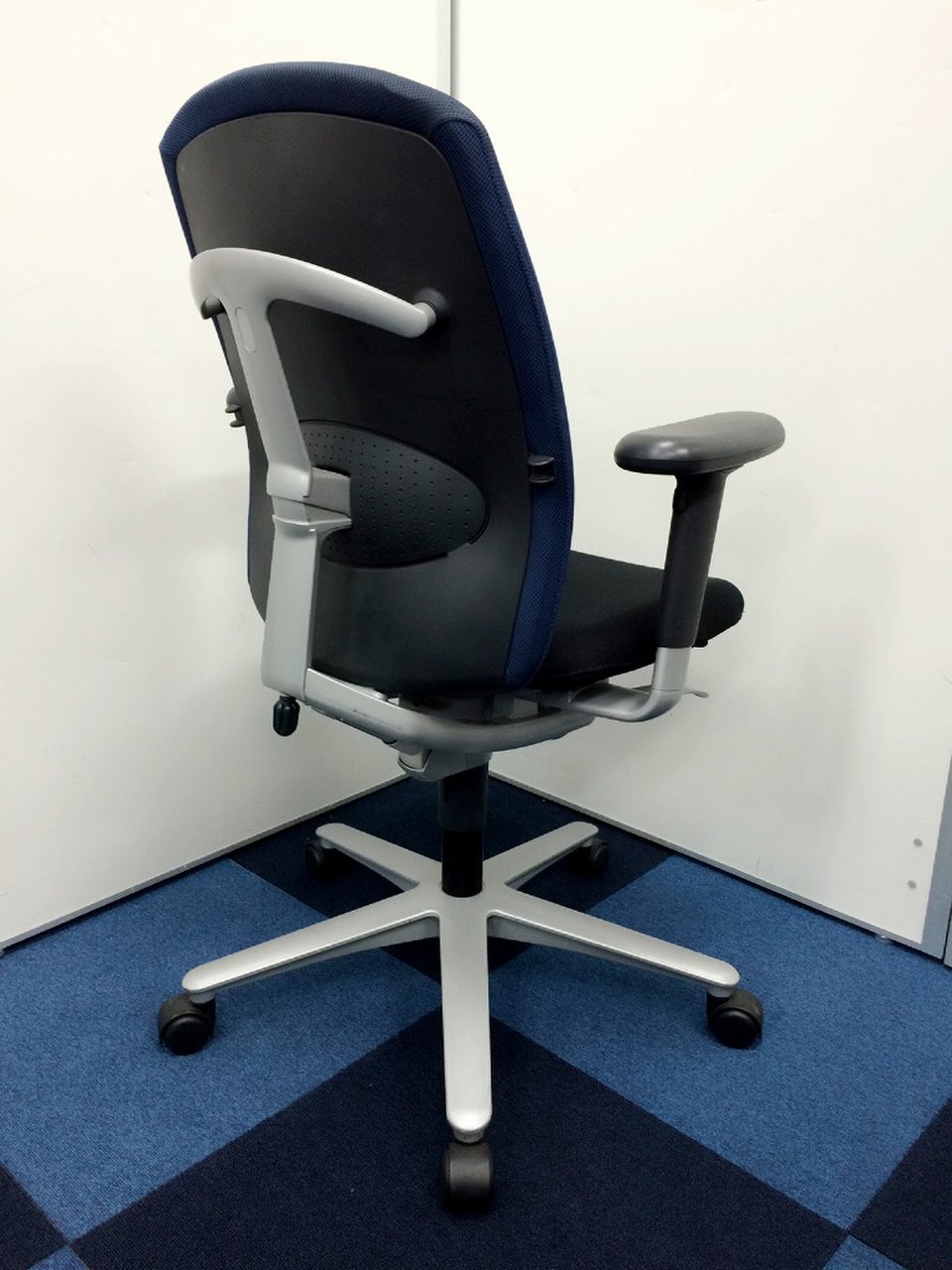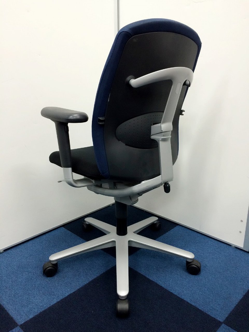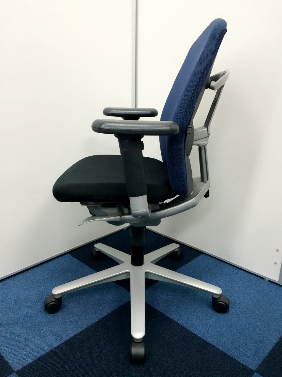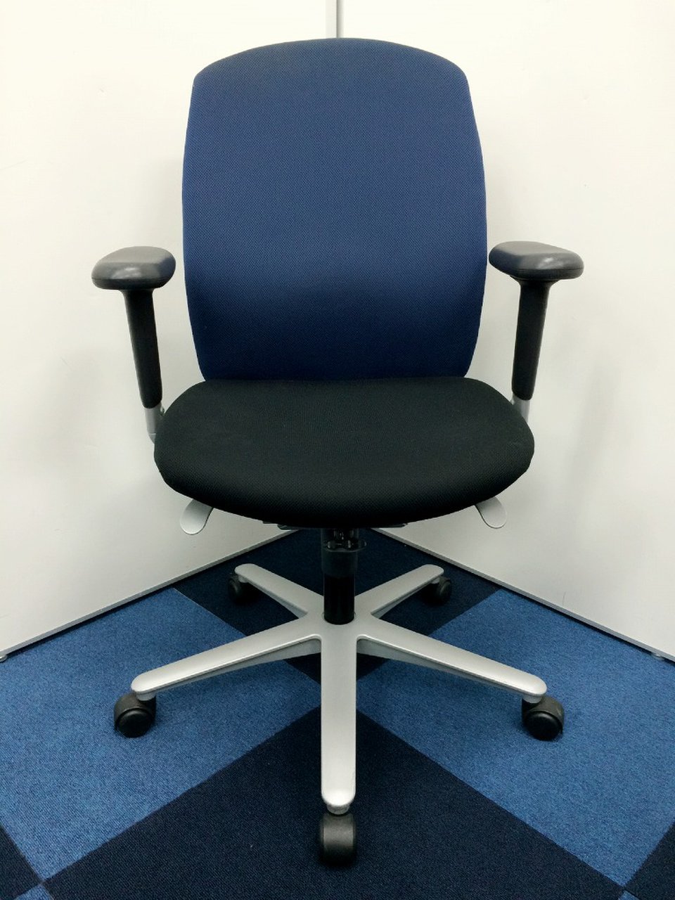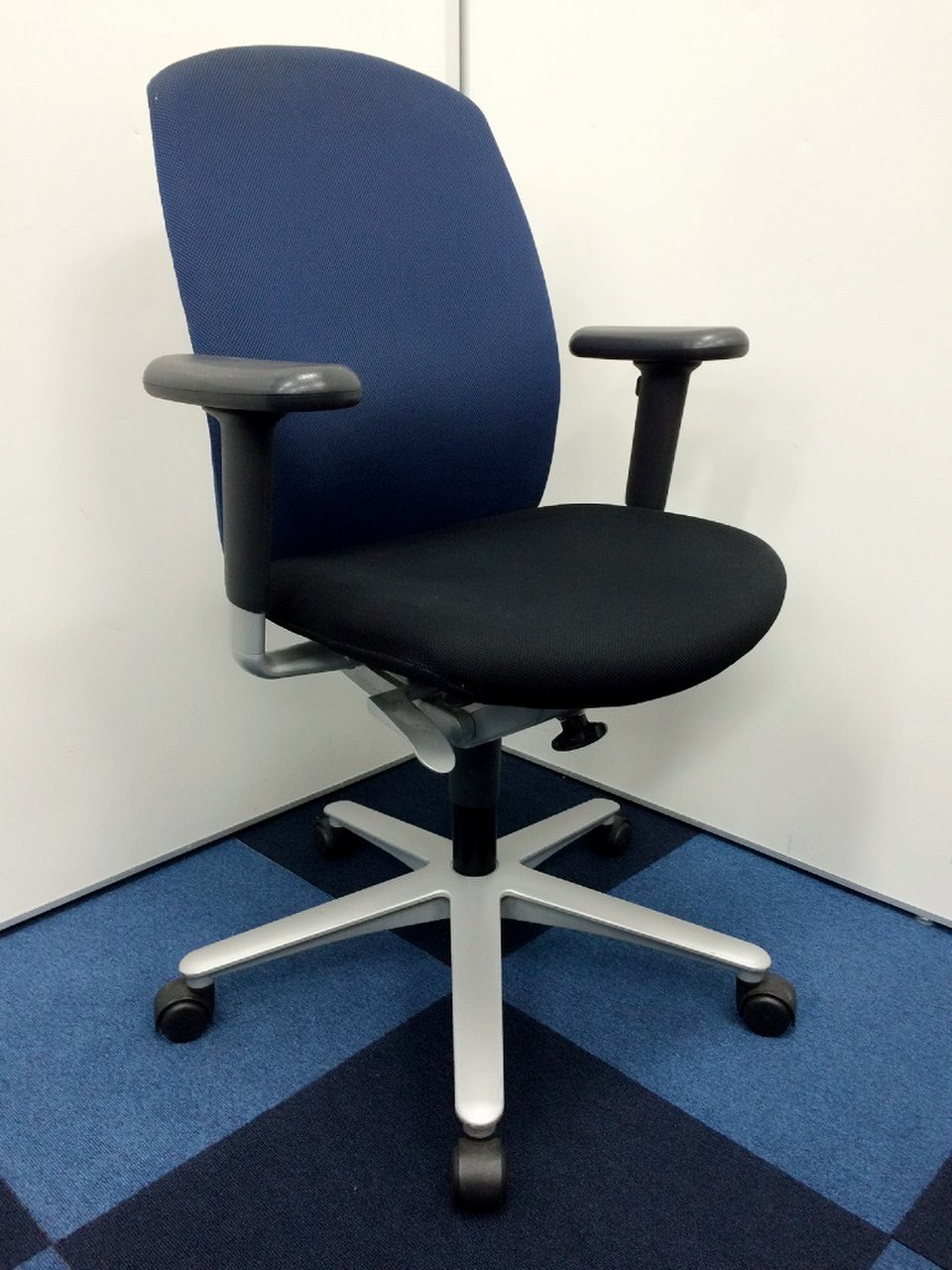 【国内メーカー】内田洋行 キャストチェア ブラック×ブルーカラー 【リクライニング】【可動肘】【京都・滋賀】