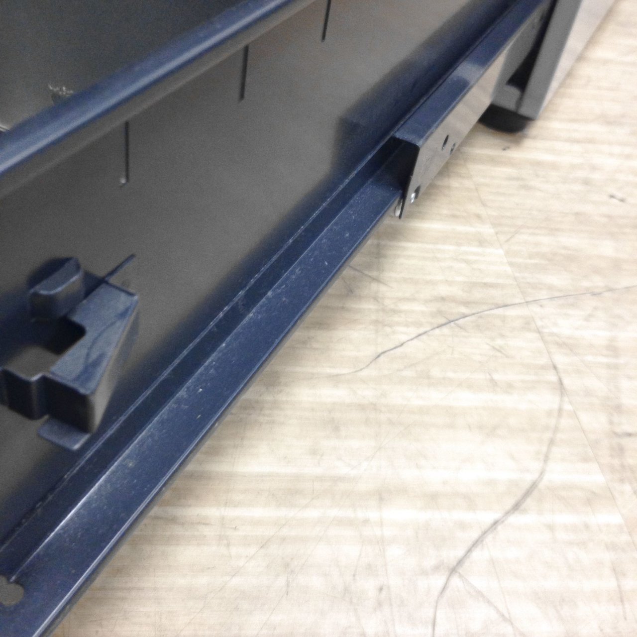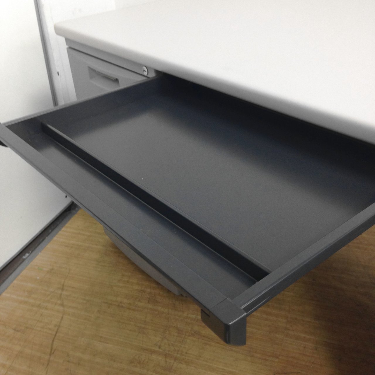 イトーキなどの一流メーカー品のデスクの収納部分にはラッチ機構が採用されておりますので、運搬や地震の際に引き出しが勝手に開かないようになっておりますので安全にご使用いただけます。