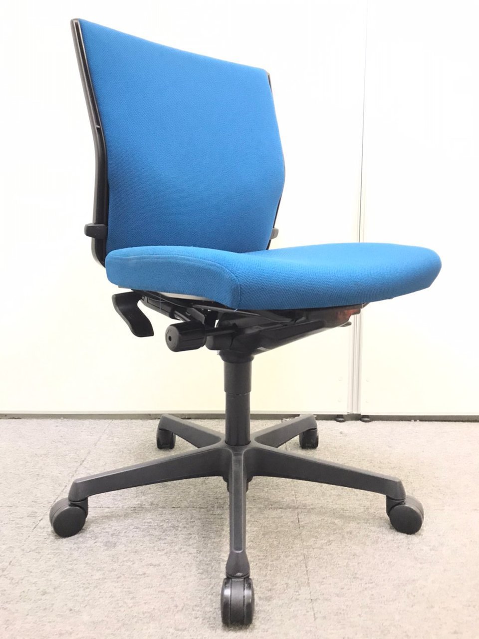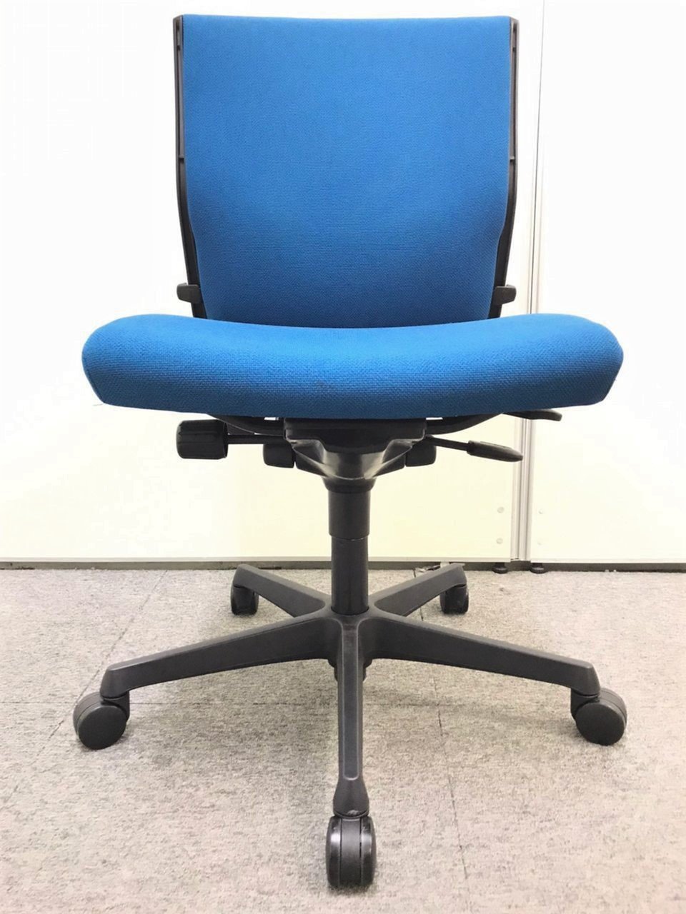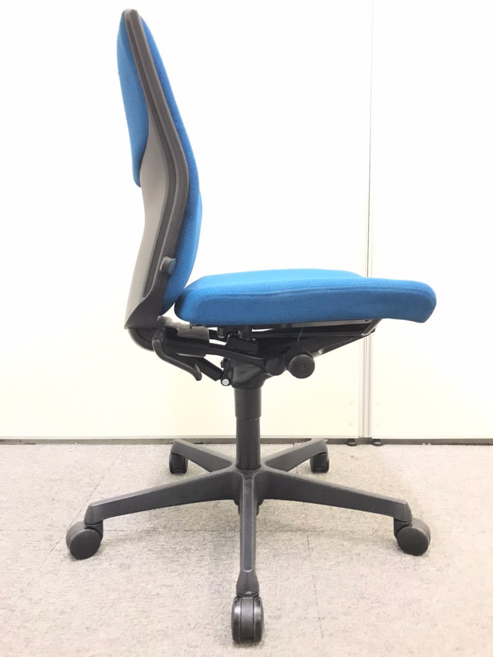 オカムラ製 エスクード 肘無しローバックチェア ブルー色 グレーシェル 【在庫入替品】コスパ抜群 おすすめ