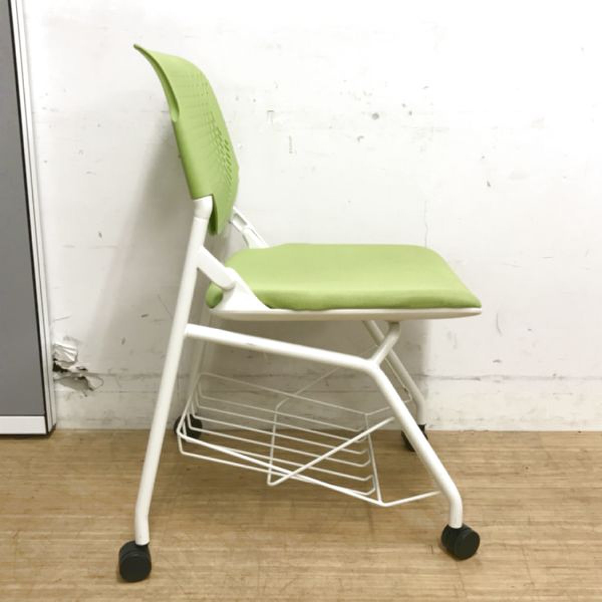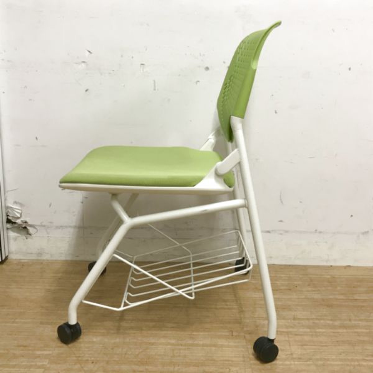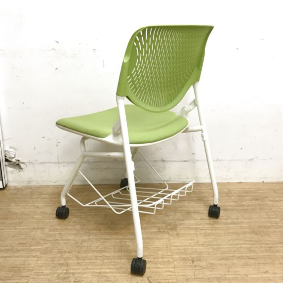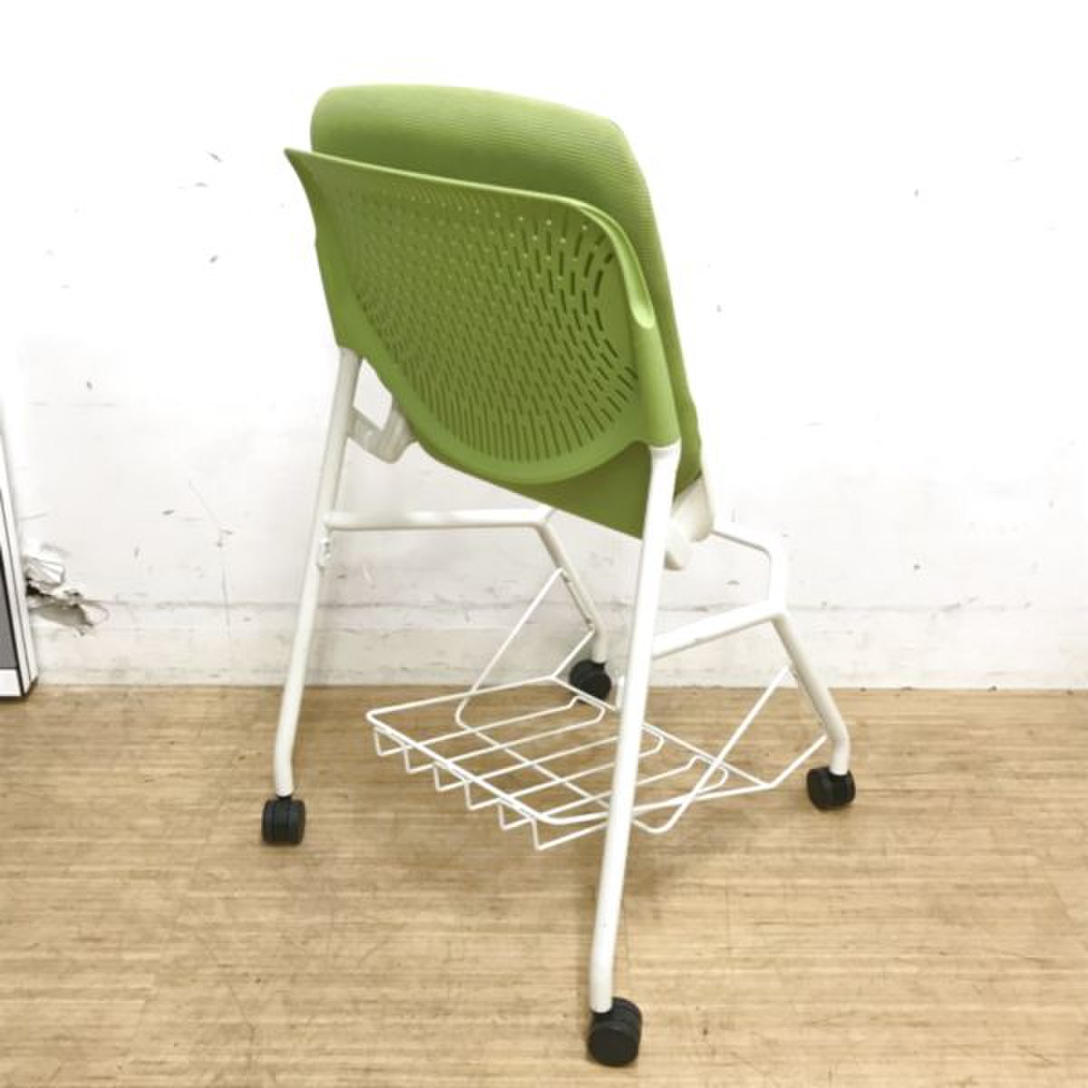 【残り1脚のため】スペース効率を高める、重ねて収納可能な会議用チェア 明るめのグリーンが会議室を華やかに- 名古屋千種店