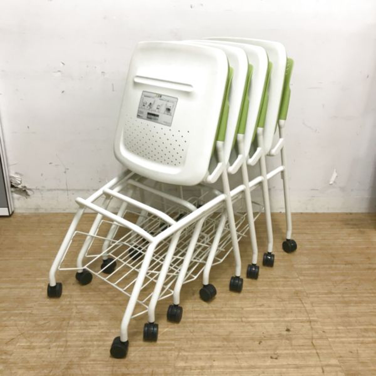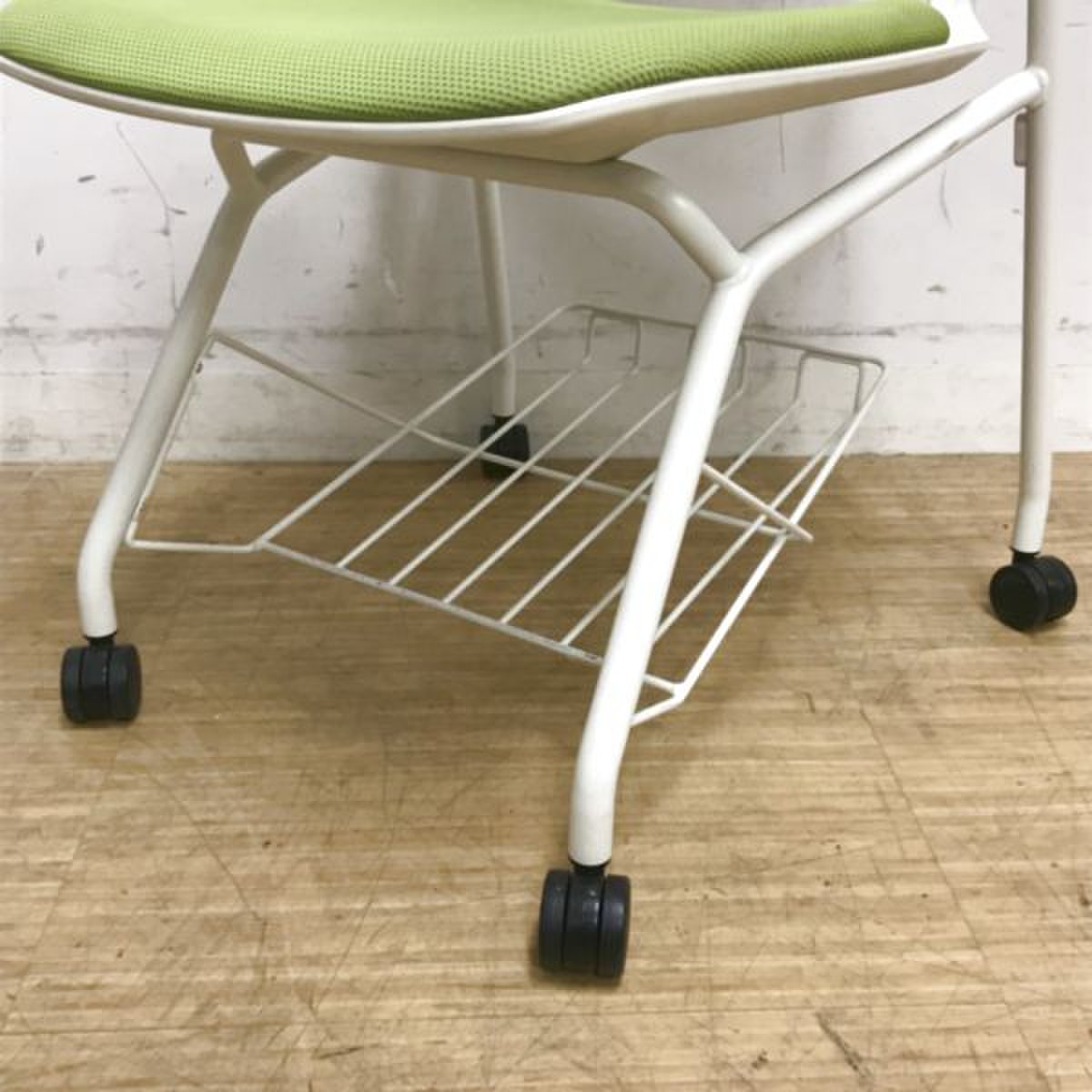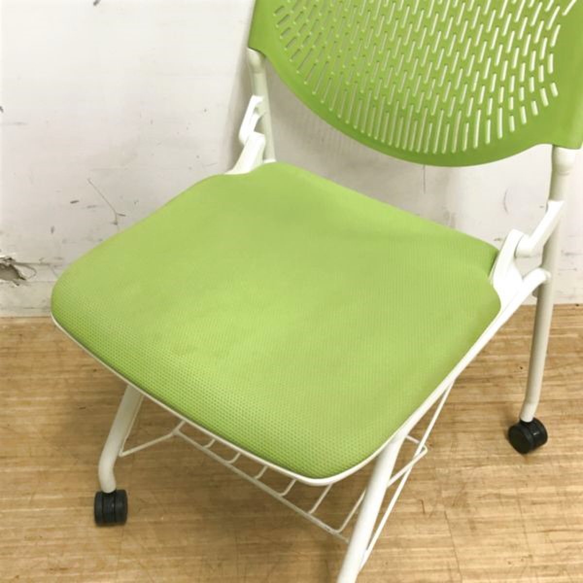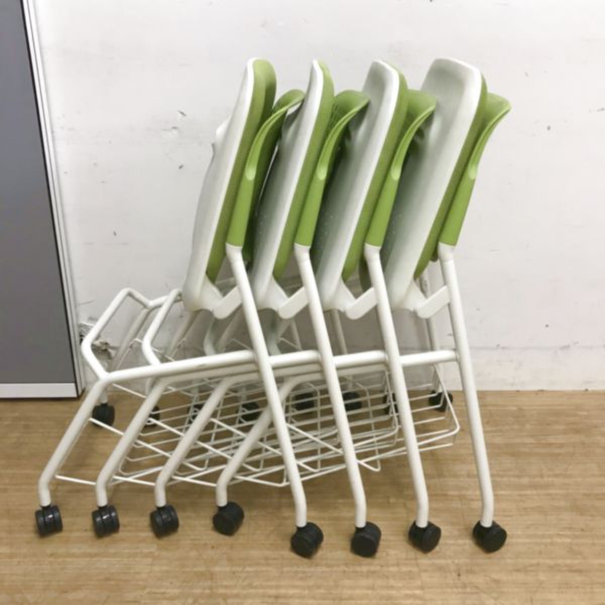 【残り1脚のため】スペース効率を高める、重ねて収納可能な会議用チェア 明るめのグリーンが会議室を華やかに- 名古屋千種店