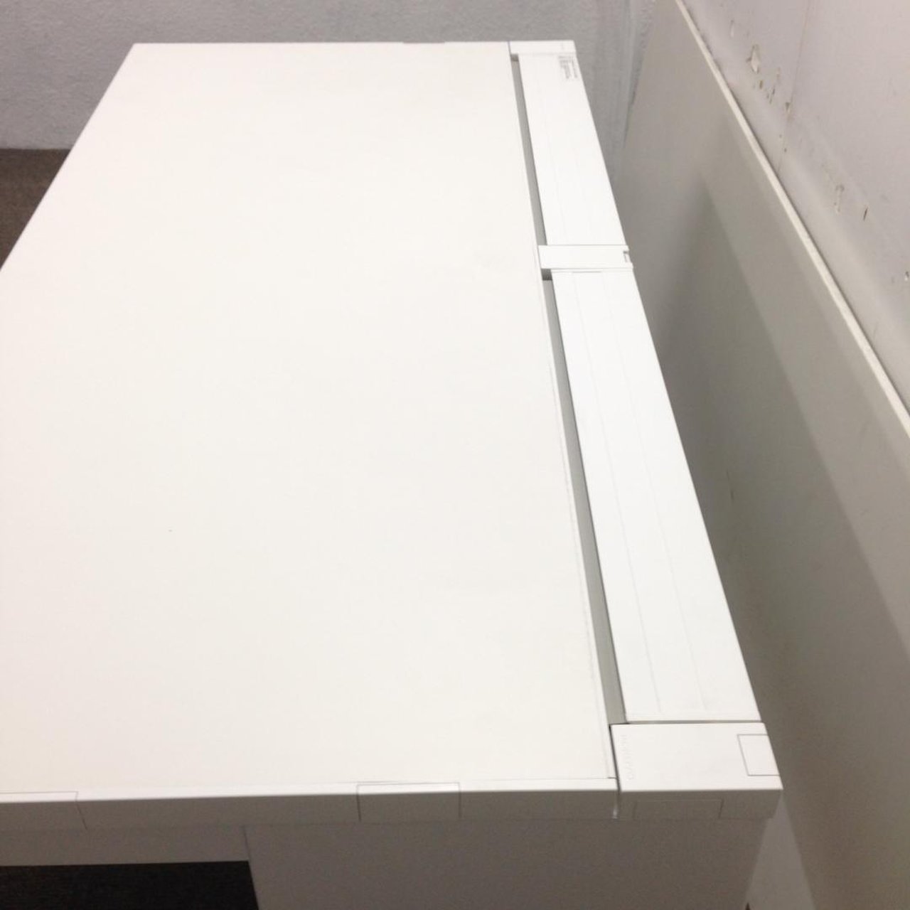 【珍しい引き出しに鍵付き!】ホワイト色の幅1200mの平机!