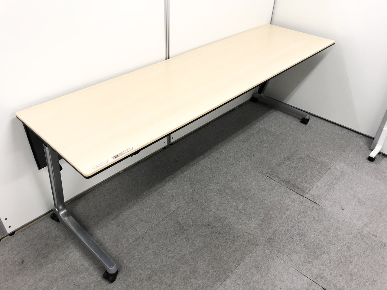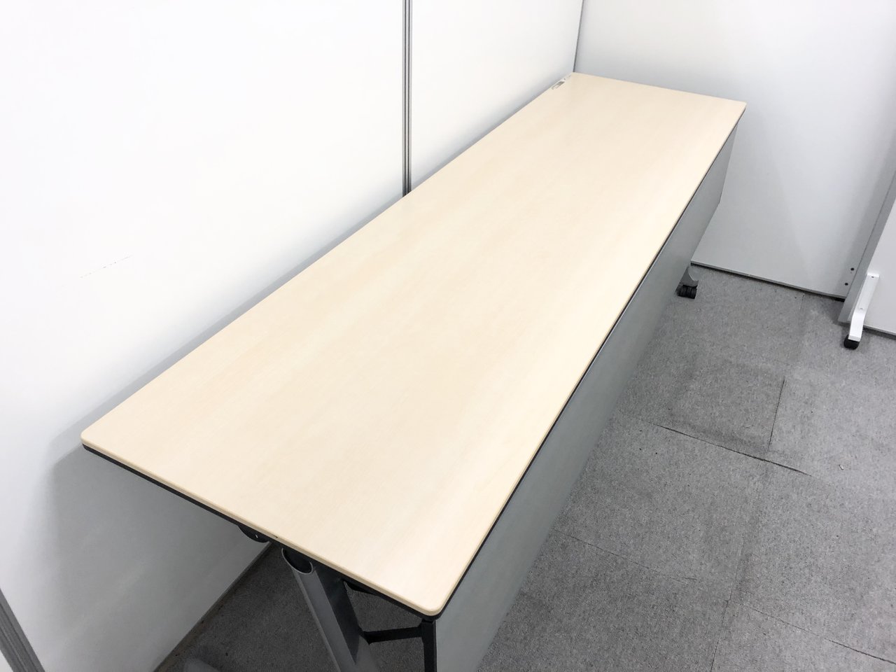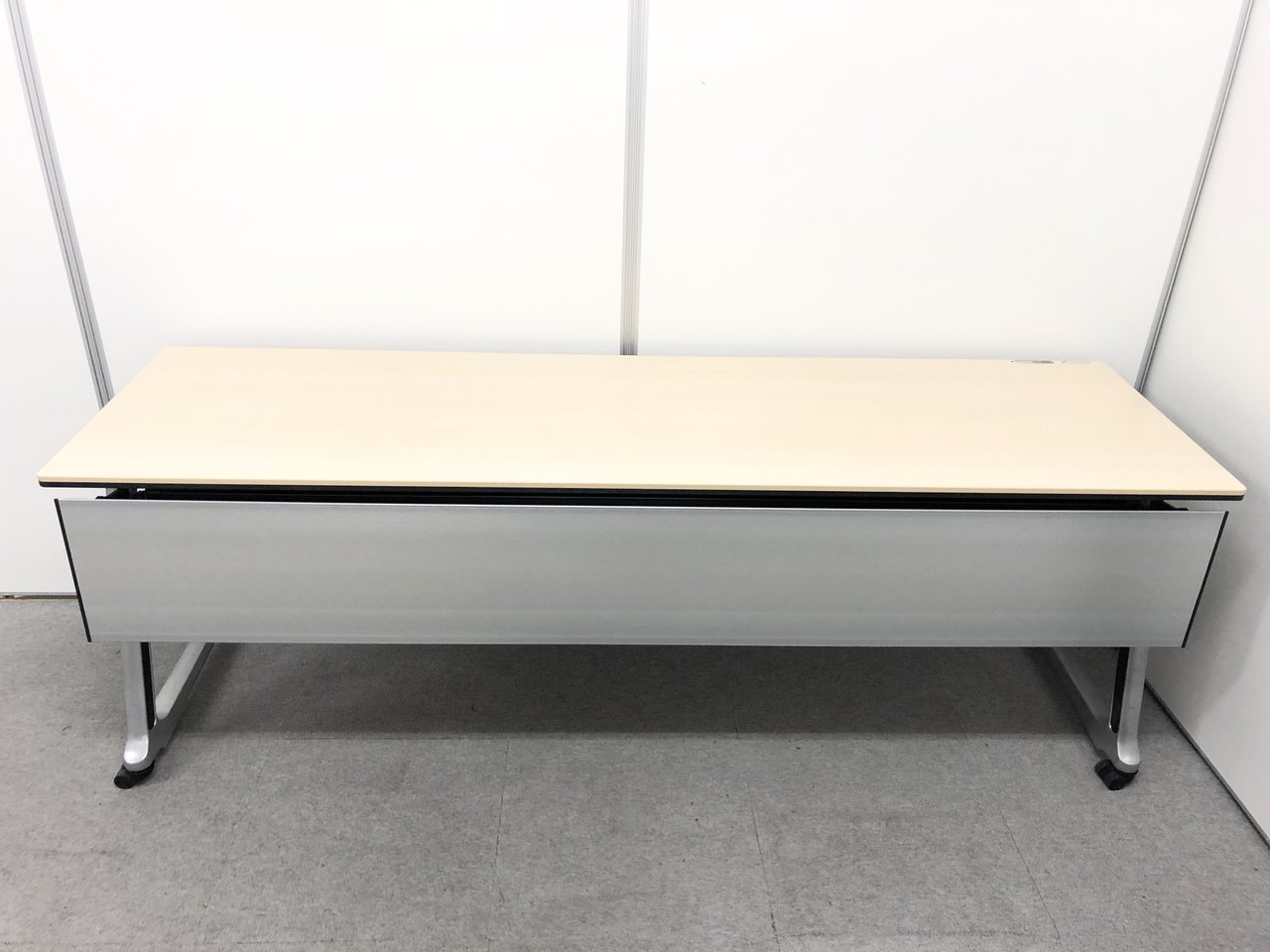 入替セールにつき大特価!【スタイリッシュなデザイン!】■オカムラ サイドスタックテーブル(幕板付)ナチュラル天板 ■W2100×D600mmタイプ【レア】- 足立・葛飾店