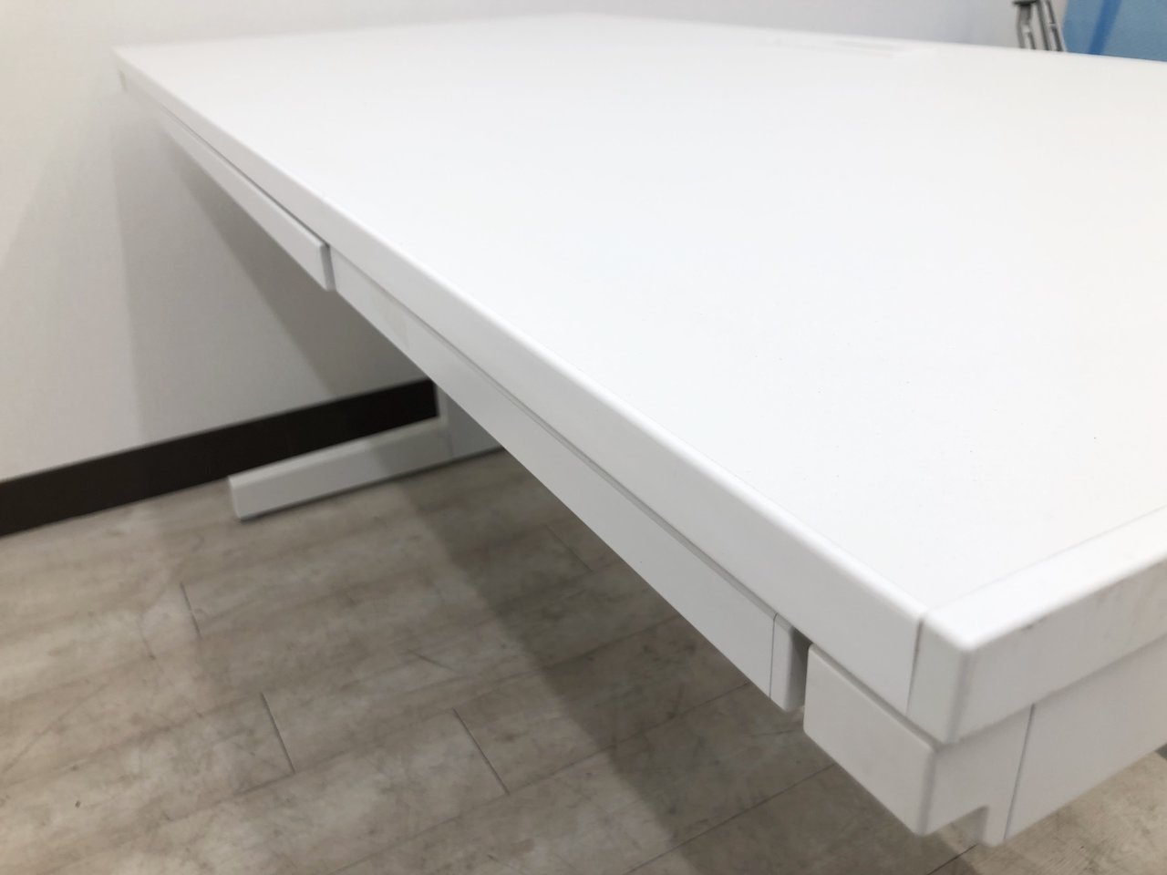 - 机の角がシャープなので、隣り合うデスクがフラットにつながります。すっきりとしたデザインです。
