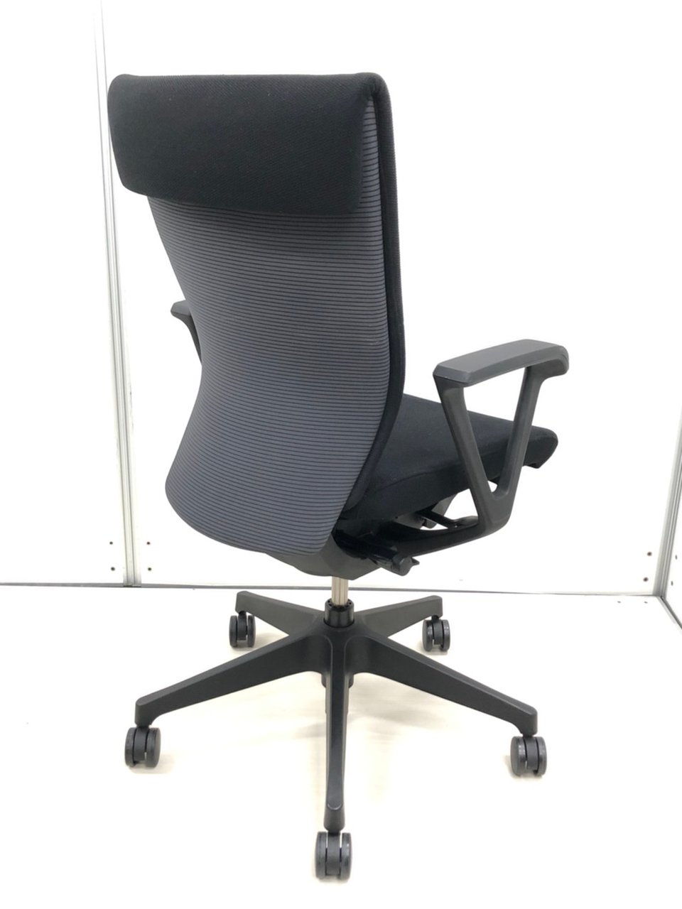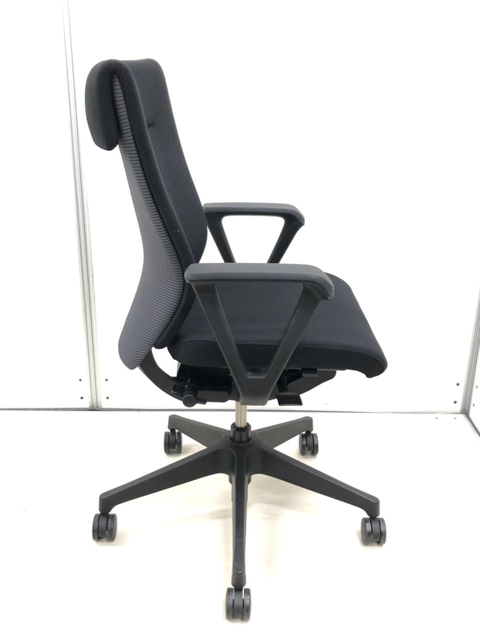 ブラックカラーのシックなハイバックチェアでございます。