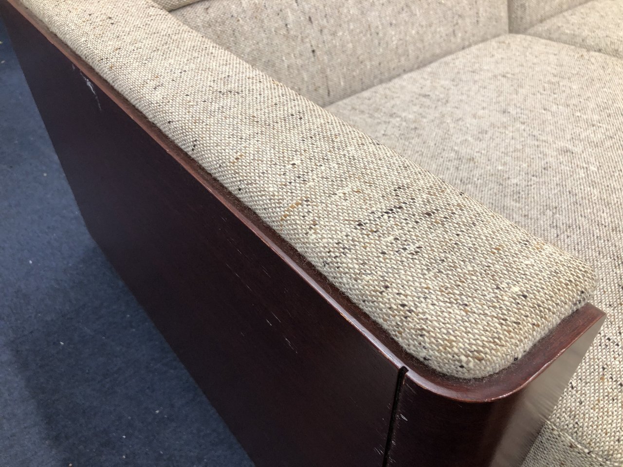 - あり黄ばみ・変色が広い範囲にうっすらある、または濃い黄ばみ・変色が一部ある。(例:三人用ソファ、二人用ソファ、一人用ソファの場合、背もたれ、肘かけ、座面等、 センターテーブルの場合、天板、脚にある。)