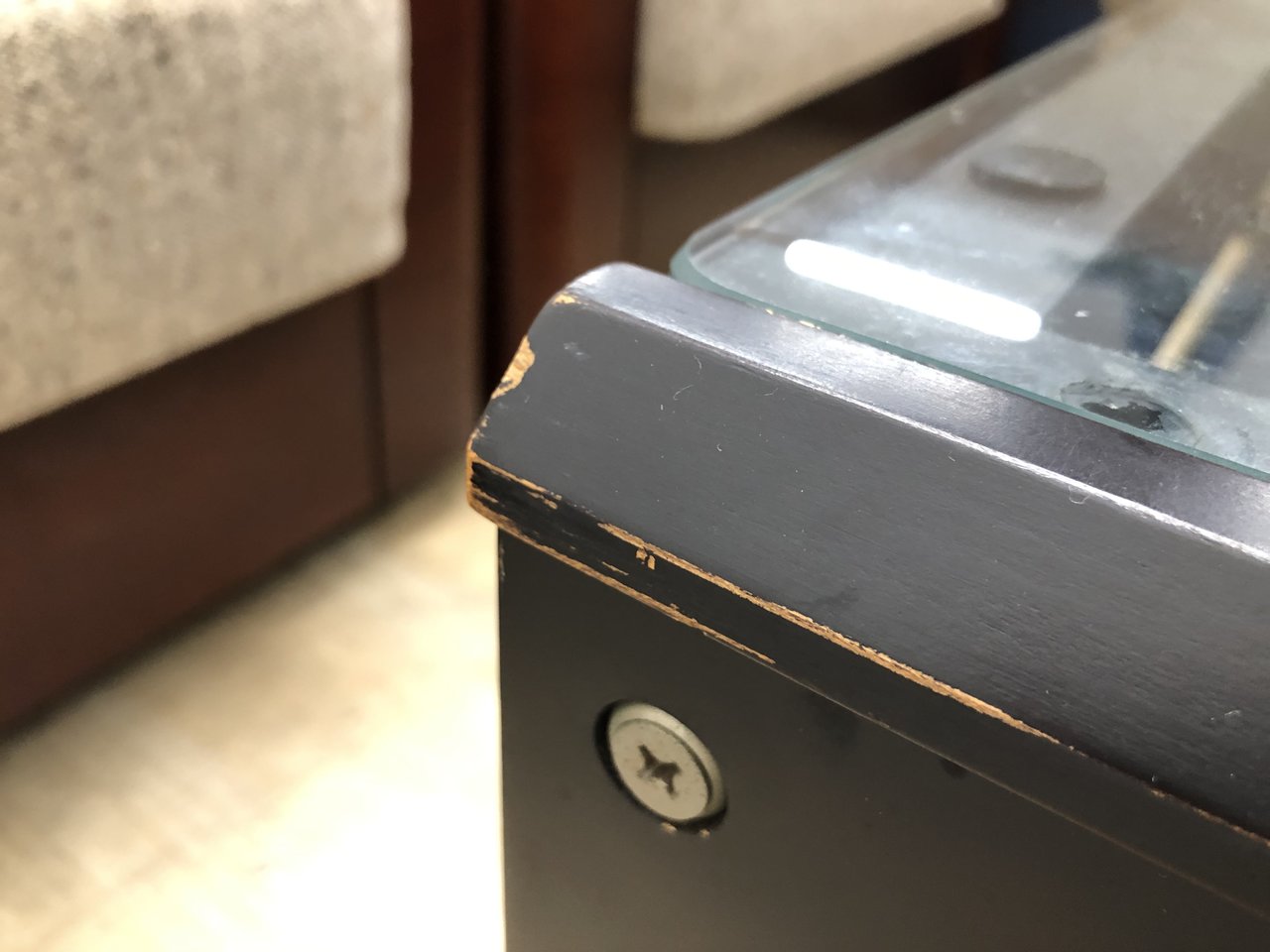 - 若干ありソファの場合、破け、ホツレ、へたり、しわ等が一部ある。(例、背もたれ、肘かけ、座面等にある。)センターテーブルの場合、傷・凹みが一部ある。(例、天板、 脚にある。)