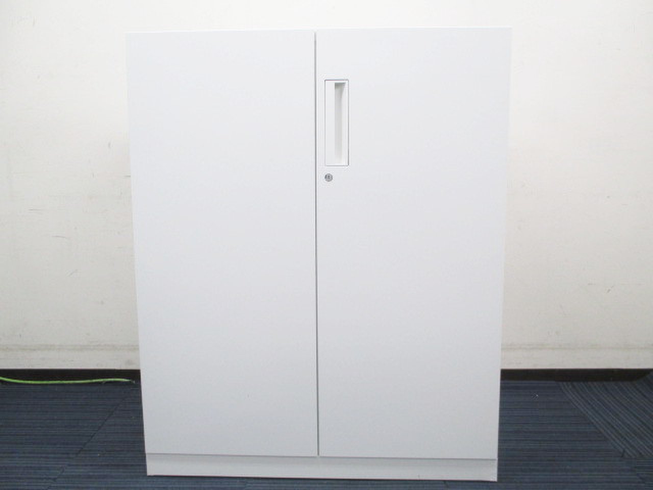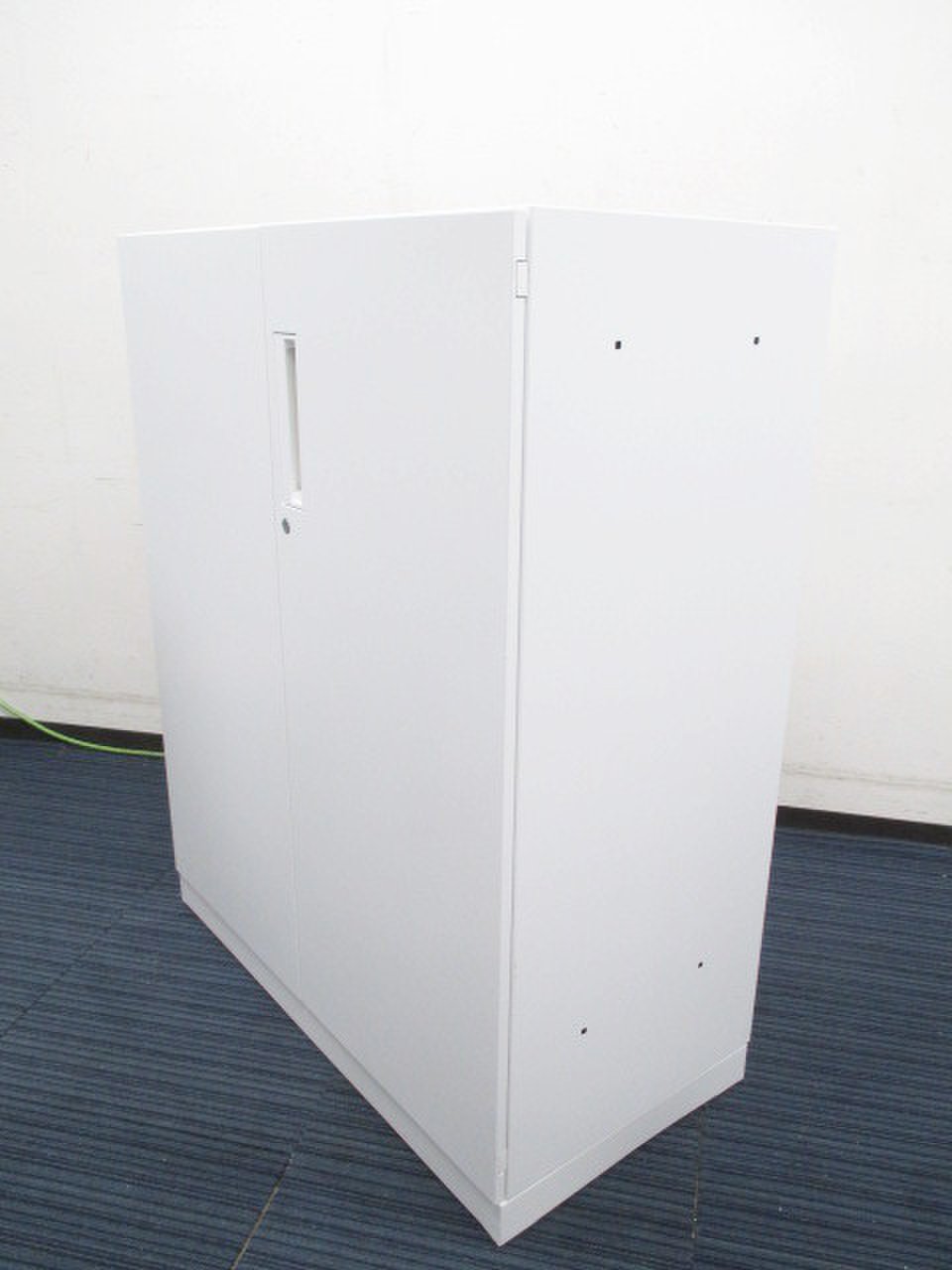 腰高サイズの両開き書庫入荷!取っ手が上部にあるので開けやすい構造です。|ホワイト|書棚 本棚 書類整理