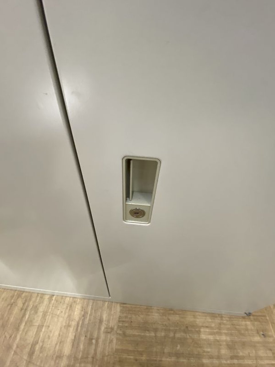 【2台入荷】背が若干高めのジャストサイズスチールキャビネット!!観音開き戸タイプで出し入れ楽々!!