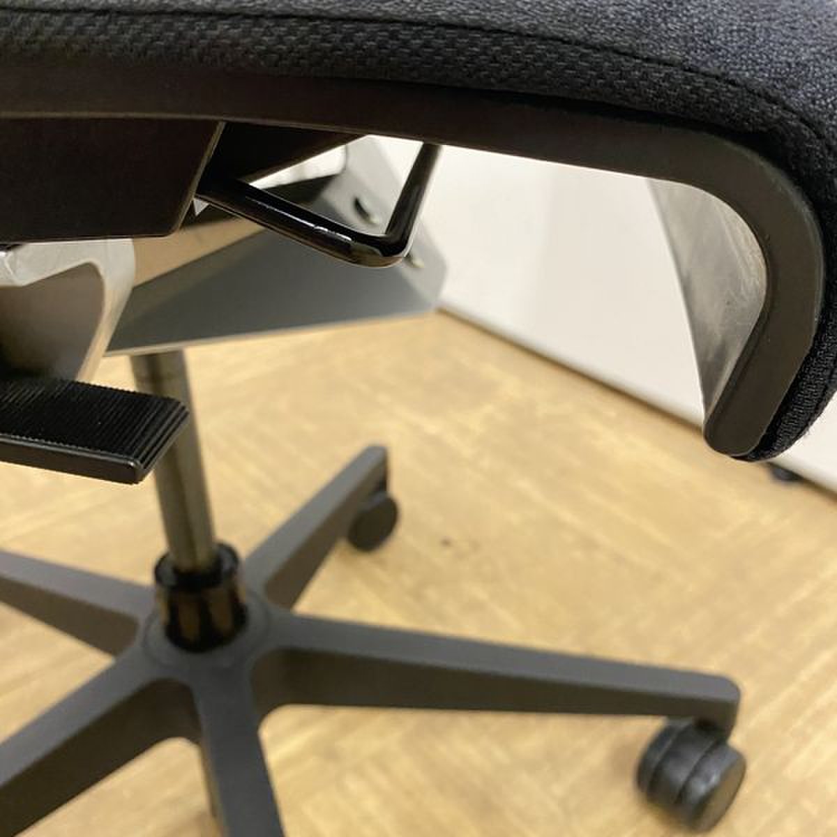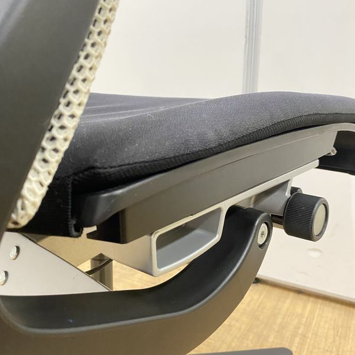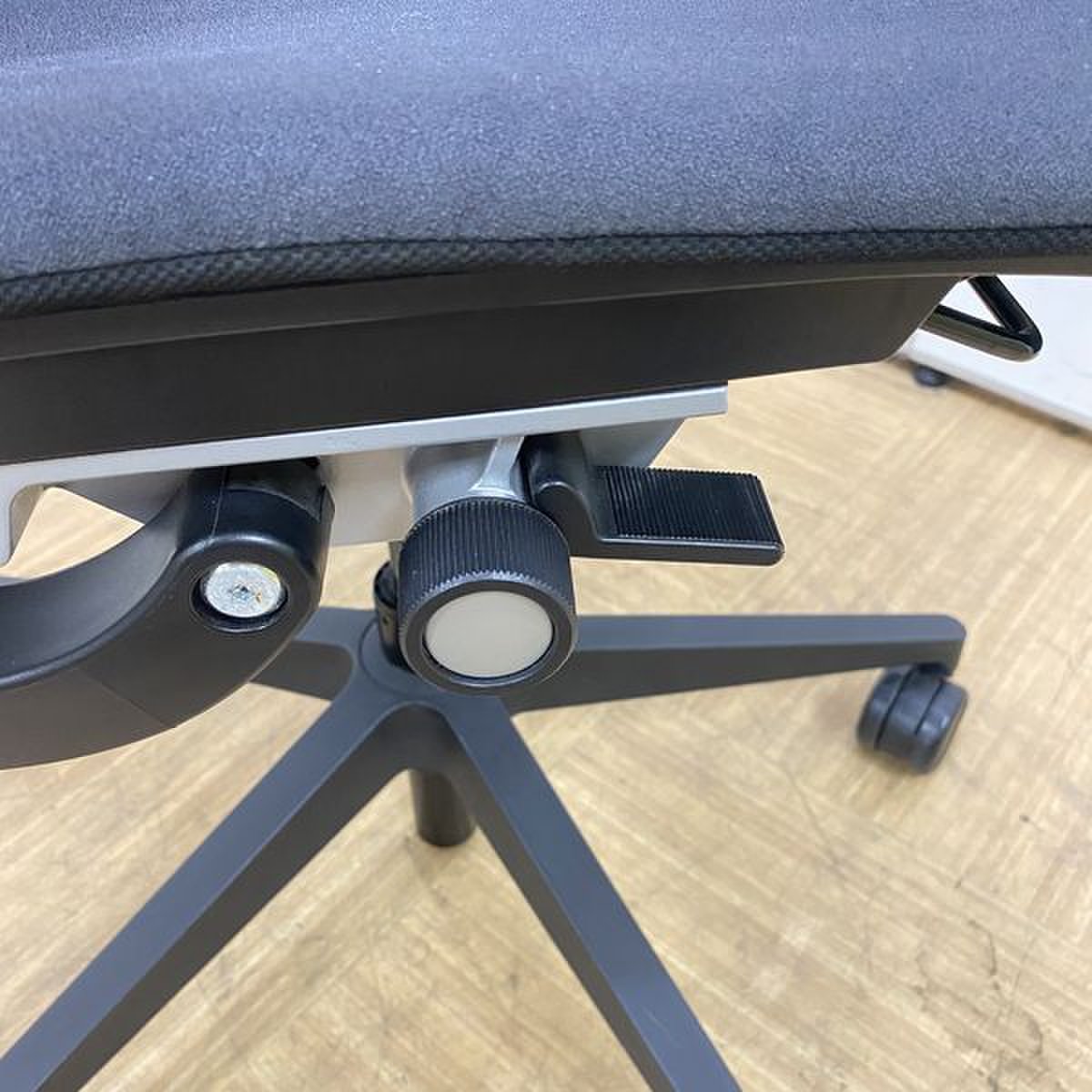 快適な座り心地に不可欠な調節機能である、上下昇降、座面の奥行き調整、リクライニングなどを備えており、操作もわかりやすく好評です。 特に、座面の奥行きは、座面下の左右に通った細いバーで調整でき、座ったままで軽やかに滑るように調整が可能です。 価格面では、新品では高めですが、中古は流通も多く、定価の3割前後の価格で高級チェアの座り心地を手に入れることができます!