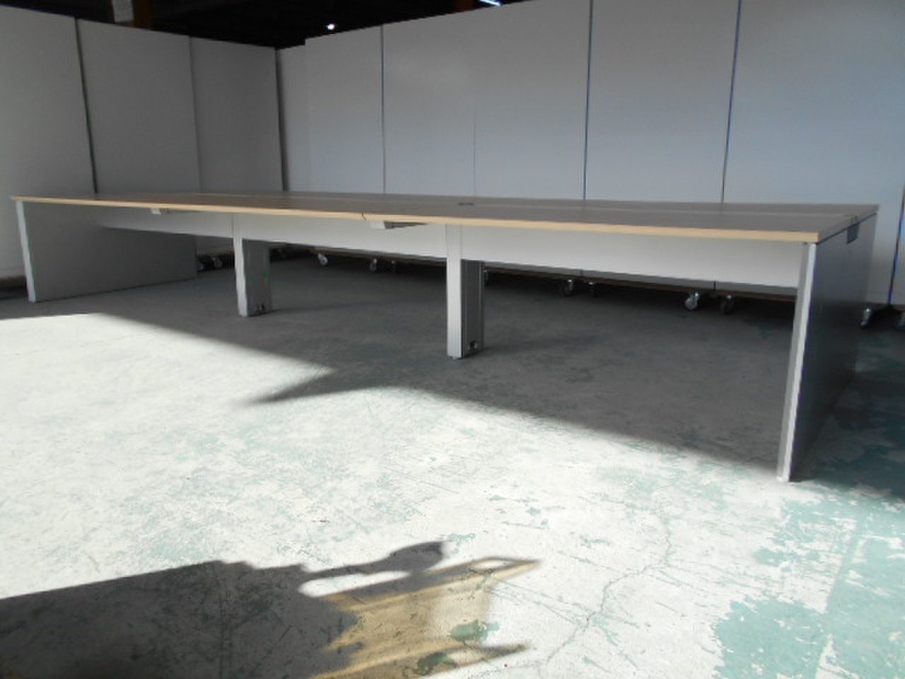 【コロナ対策にも!】オカムラ(okamura)プロユニットフリーウェイ (ProUnit Freeway) フリアドデスク 幅4000㎜/色:ナチュラル(ネオウッドライト)/8~10名様推奨