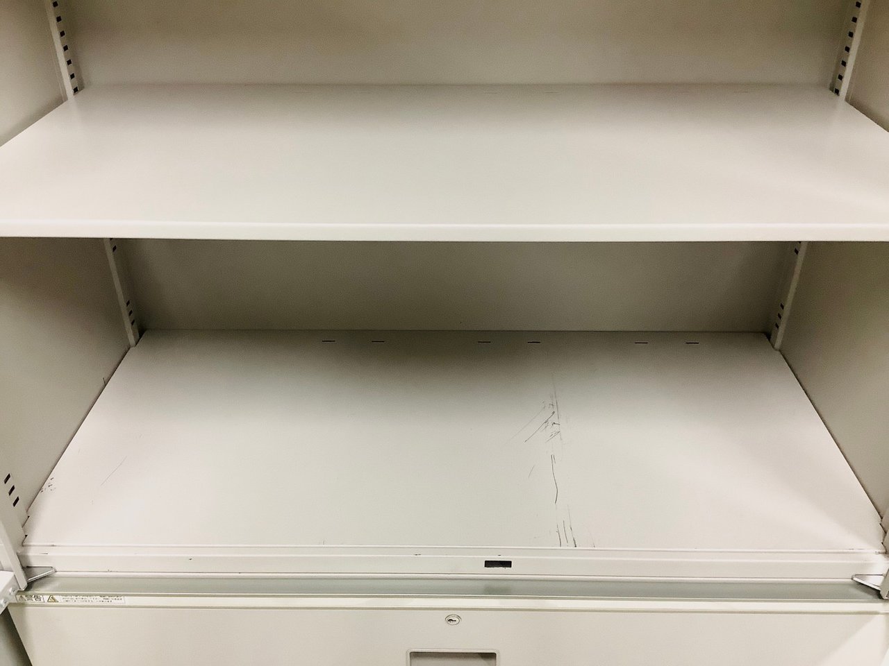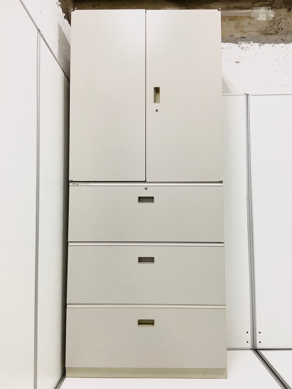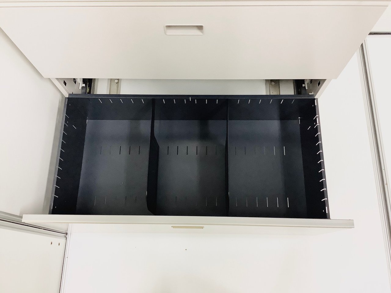 - 一部不具合ありそ引出の開閉不可、施錠不可、棚板無しといったの書庫の本来の効用を果たすための機能以外の一部が使用不可(例、扉、引出の開閉がしづらいなどがある。 )