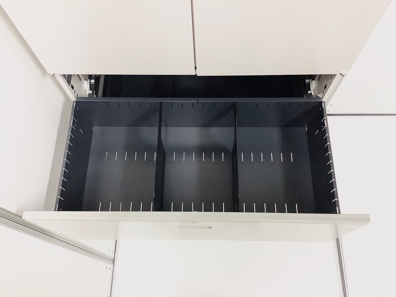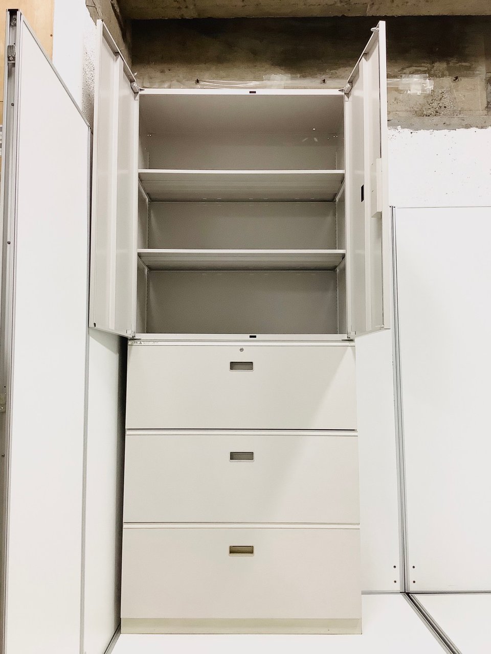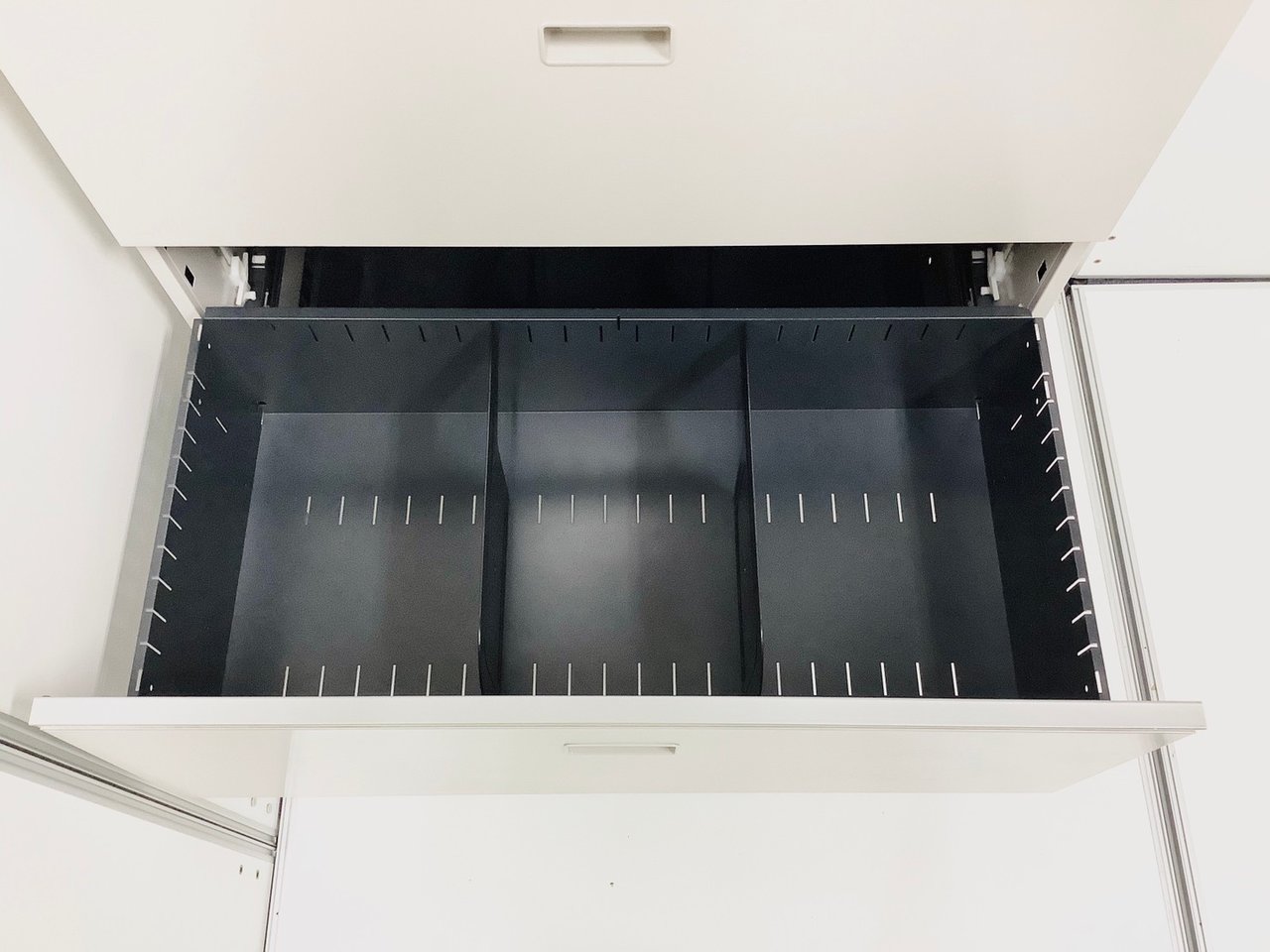 - 一部不具合ありそ引出の開閉不可、施錠不可、棚板無しといったの書庫の本来の効用を果たすための機能以外の一部が使用不可(例、扉、引出の開閉がしづらいなどがある。 )