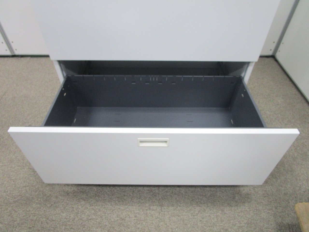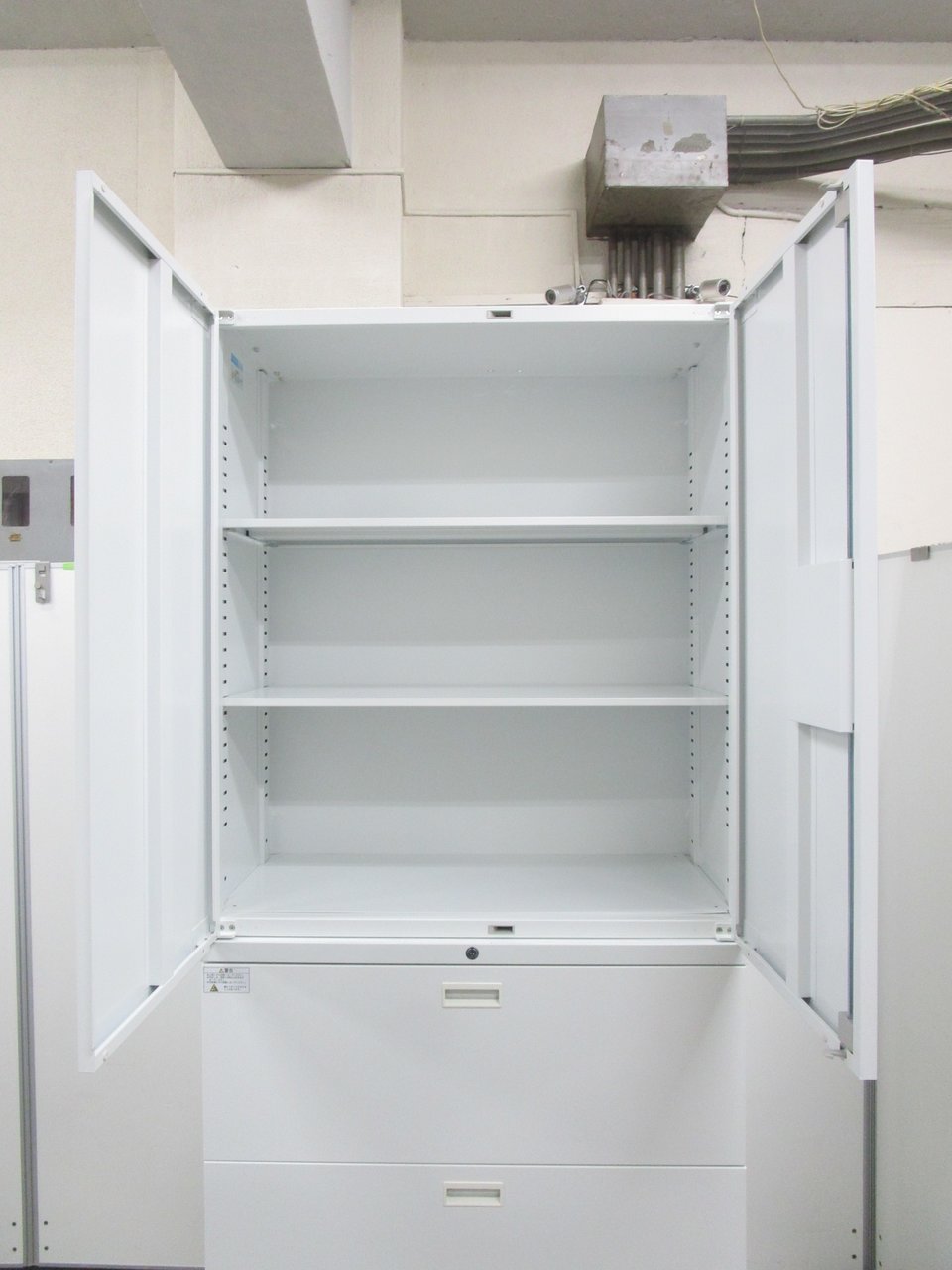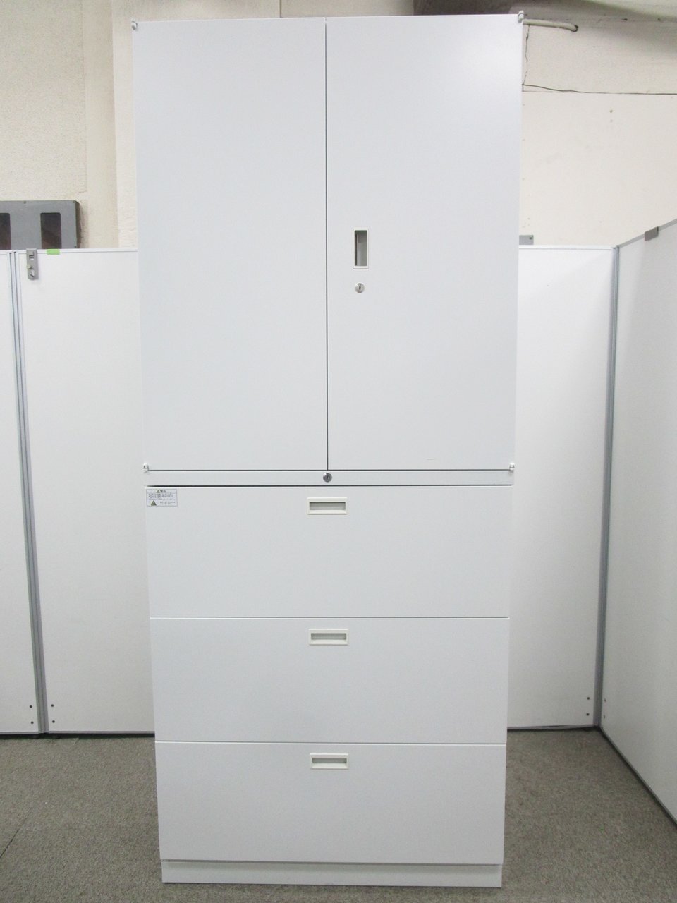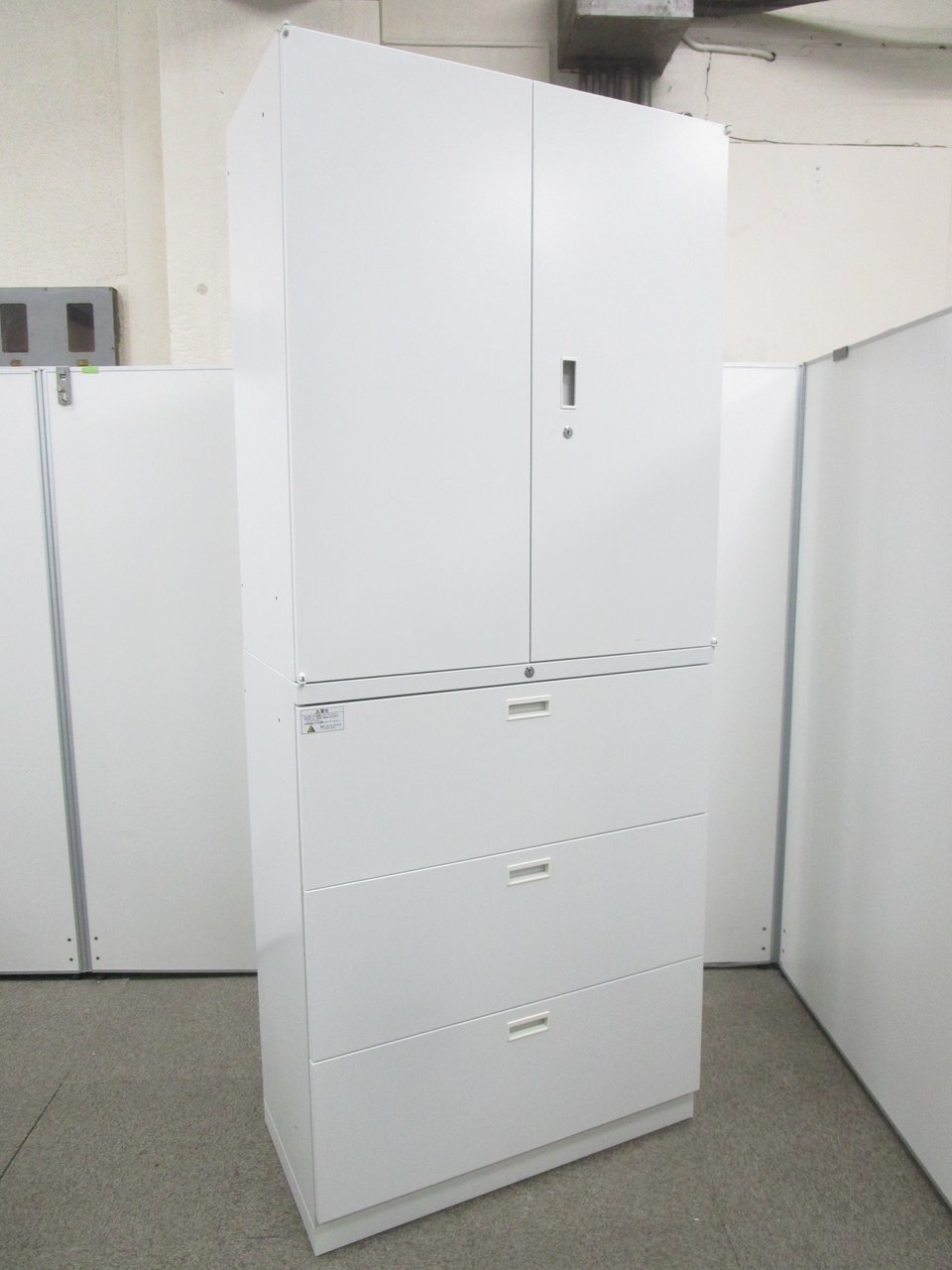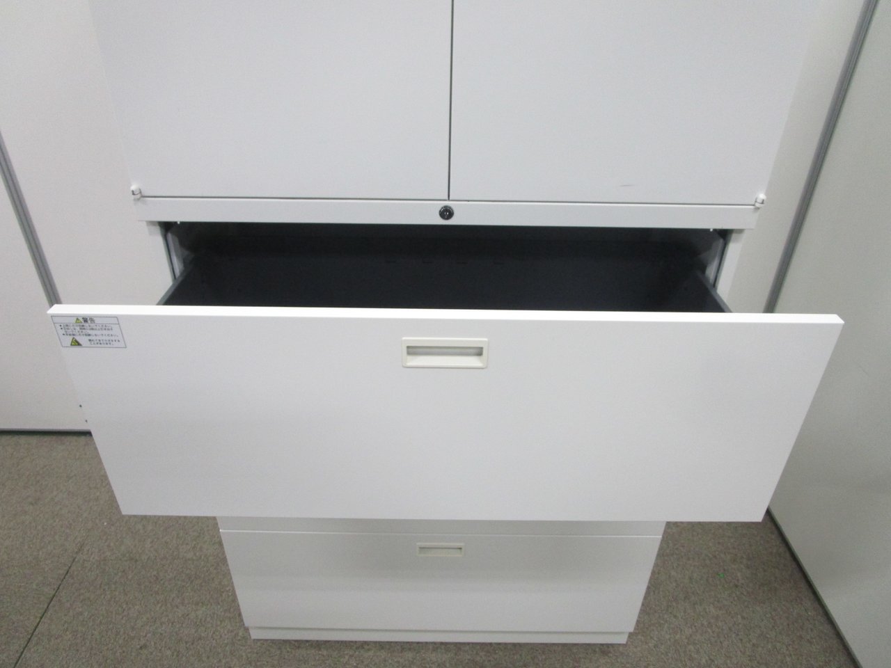 - 一部不具合ありそ引出の開閉不可、施錠不可、棚板無しといったの書庫の本来の効用を果たすための機能以外の一部が使用不可(例、扉、引出の開閉がしづらいなどがある。 )