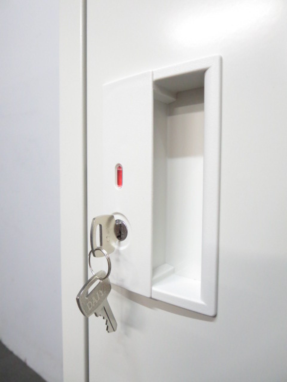 鍵は開閉状態を一目でわかる様に鍵穴付近に青と赤で確認ができるようになっております。
