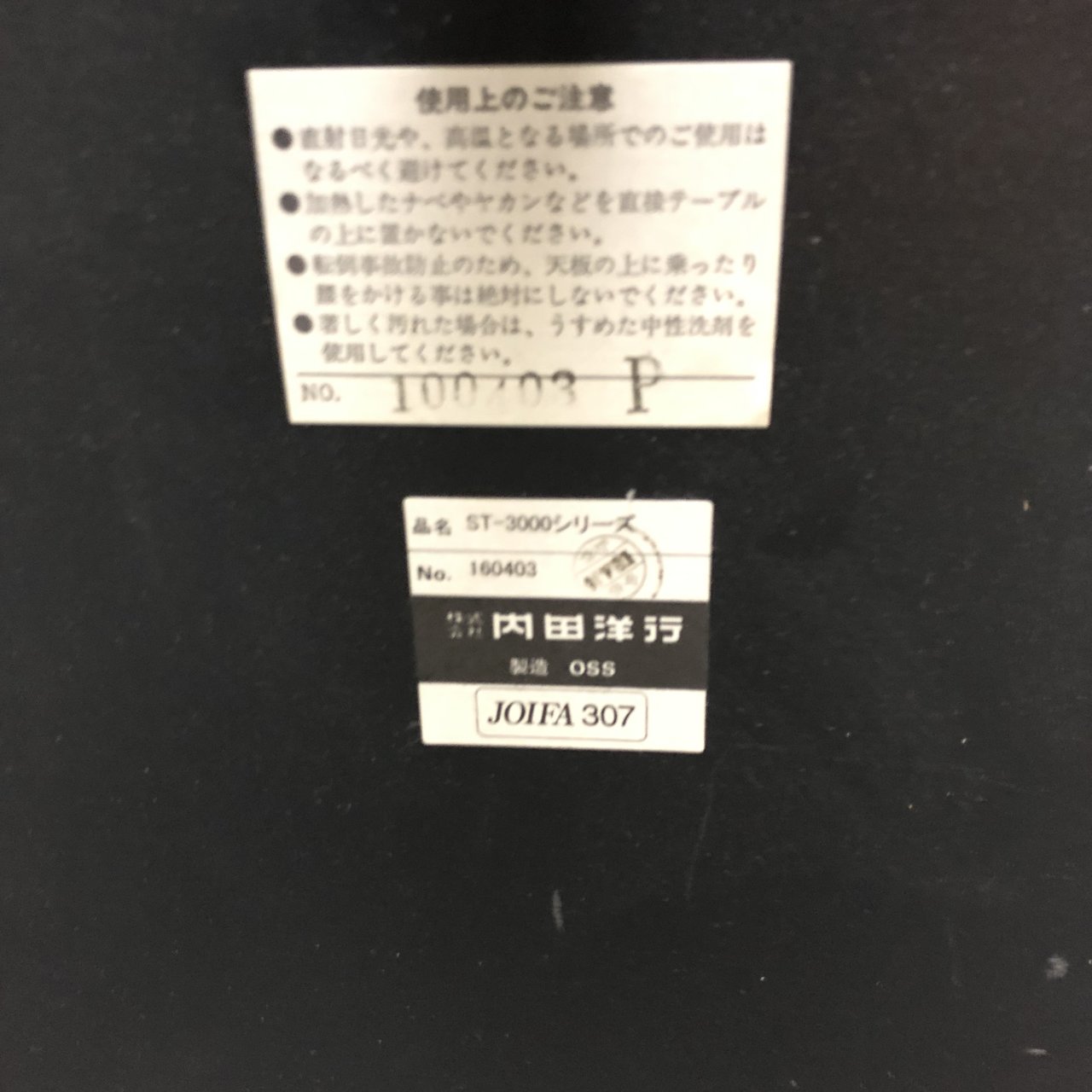 - 一部不具合あり天板歪み、アジャスター無し、キャスター使用不可ようなそのテーブルの本来の効用を果たすための機能以外の一部が使用不可な状態。(例、キャスターロッ ク機能使用不可、棚板無し等がある。)