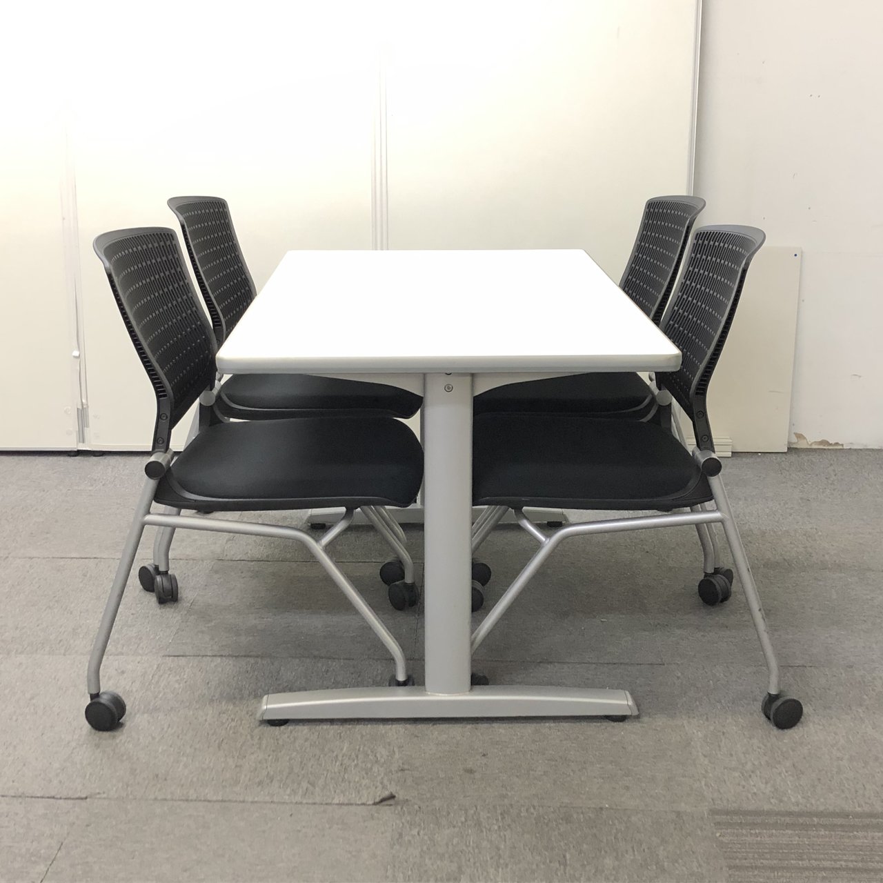 【テーブル+チェアセット!】ミーティングテーブルとブラックカラーのチェア4脚のセット販売です!!【関西在庫数ナンバーワン・尼崎店】- 豊中・尼崎店