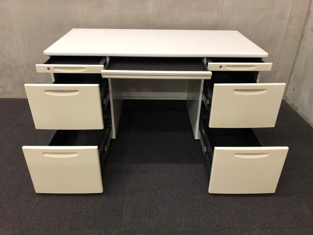 【倉庫在庫品】引出7個の大容量!永遠の定番両袖机※ホワイトカラー◆オカムラ製- 春日部・越谷店