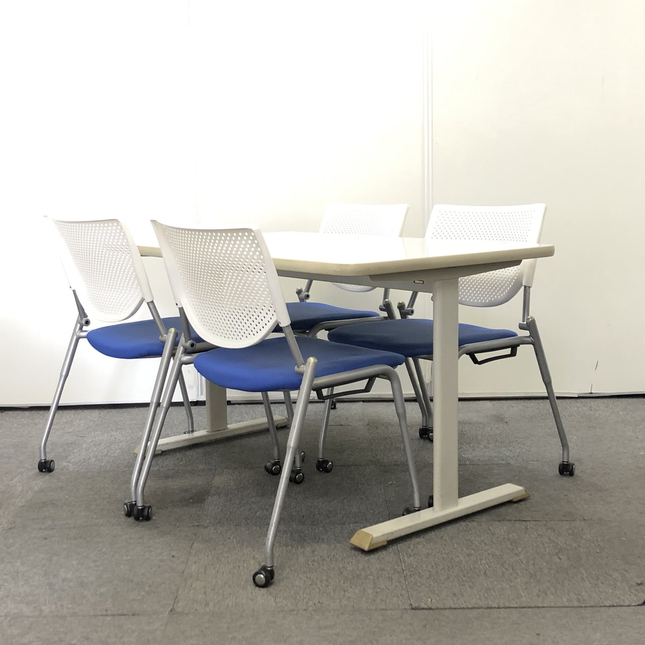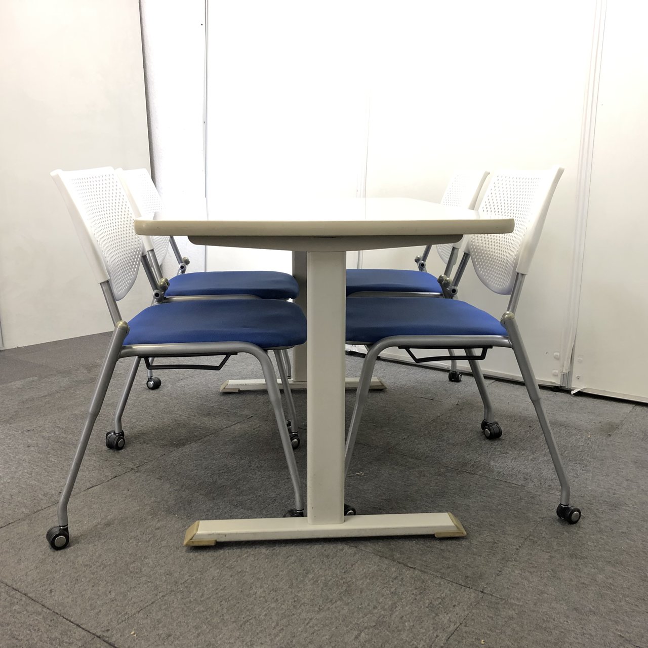 【ミーティングテーブル+チェアセット販売!】定番ホワイトカラーテーブルとブルーカラーのチェア4脚セットです!!【関西在庫数ナンバーワン・尼崎店】- 豊中・尼崎店