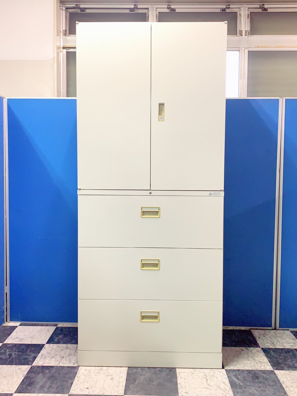 【鍵付きAランク】【迷ったらコレ!】オフィスの定番上下書庫※上段両開き&下段3段◆オカムラ製42シリーズ- 春日部・越谷店