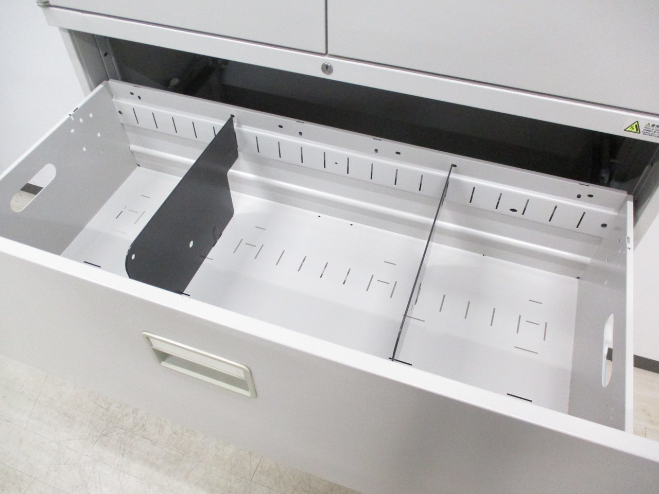 下段のラテラル型書庫は、引き出しタイプなので上から見下ろすことができるので、