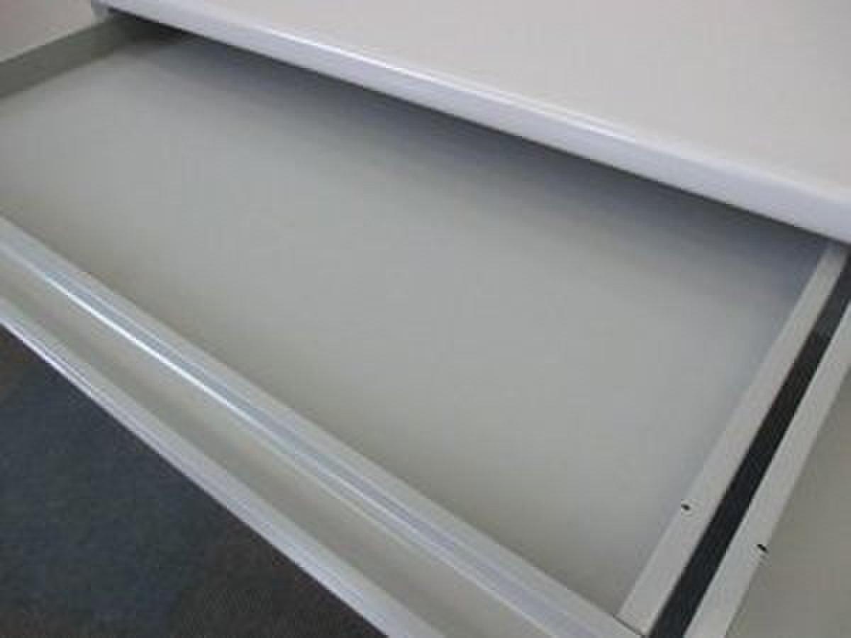 - シンプルながらも使いやすい工夫があります。ロックは、一度の施錠ですべての引出しの鍵がかかるオールロック機構。
