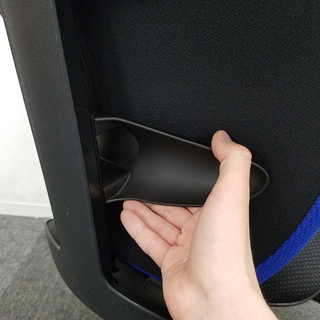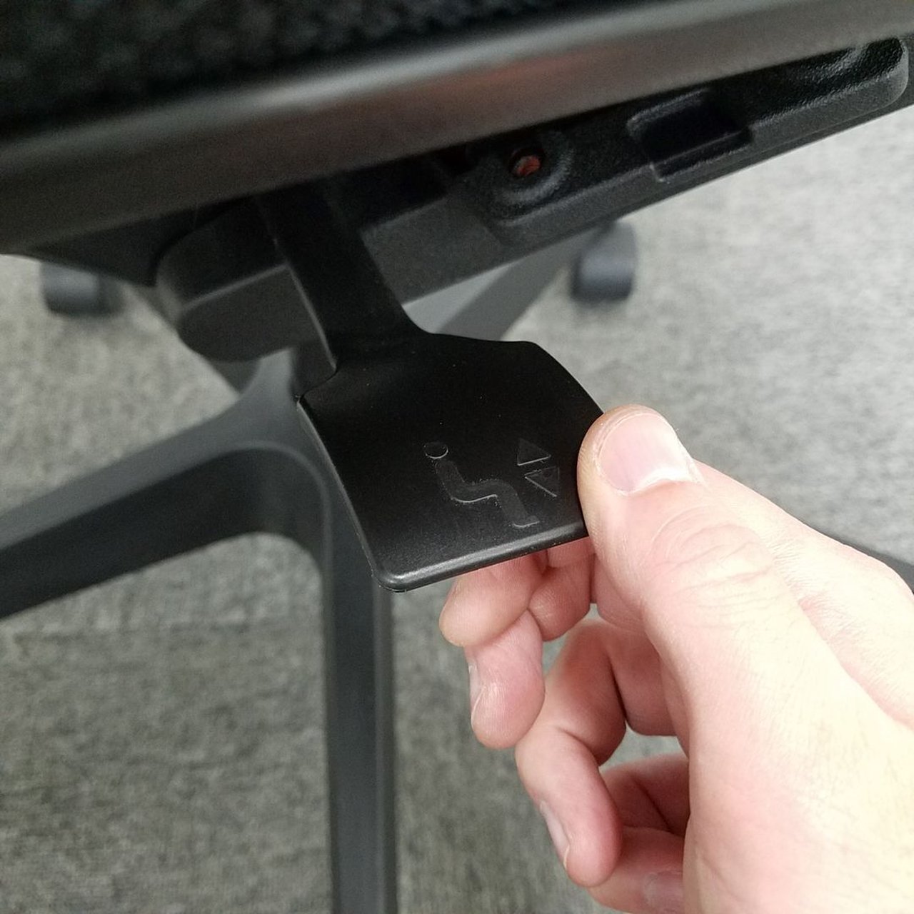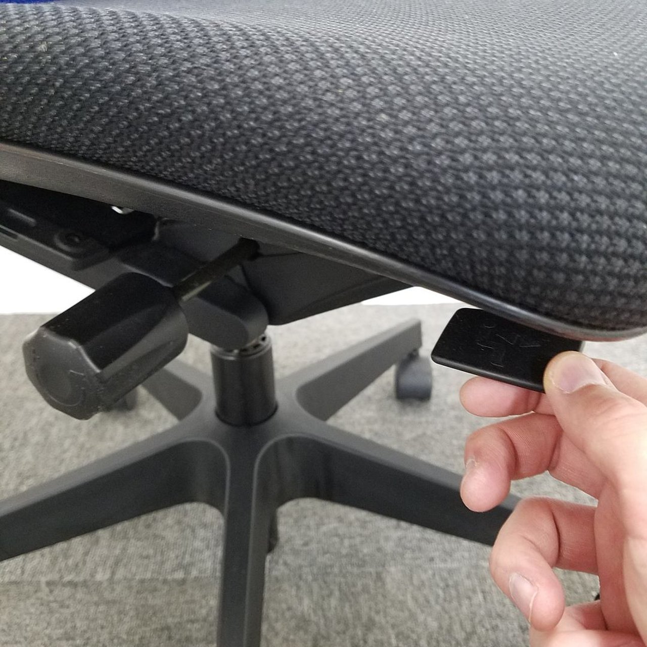 例えば、座面は、イトーキ独自の"ベンディングシート"という機構により、クッション、インターシェル、空洞という三層構造になっています。 この真ん中に挟まっているインナーシェルが、着座時の姿勢に合わせて体重を分散してくれるので、どんな姿勢でも体になじみ、疲労を軽減してくれます。 さらに、座面は前後に4センチほど奥行きを調整でき、前傾姿勢で座りたい、深く腰掛けたい、膝裏を圧迫されたくないなど、個人の好みに合った快適さにカスタマイズが可能となっています。