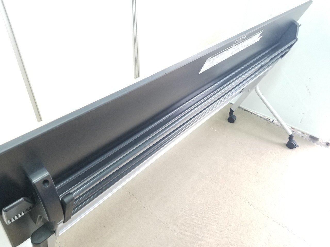 - 一部不具合あり天板歪み、アジャスター無し、キャスター使用不可ようなそのテーブルの本来の効用を果たすための機能以外の一部が使用不可な状態。(例、キャスターロッ ク機能使用不可、棚板無し等がある。)