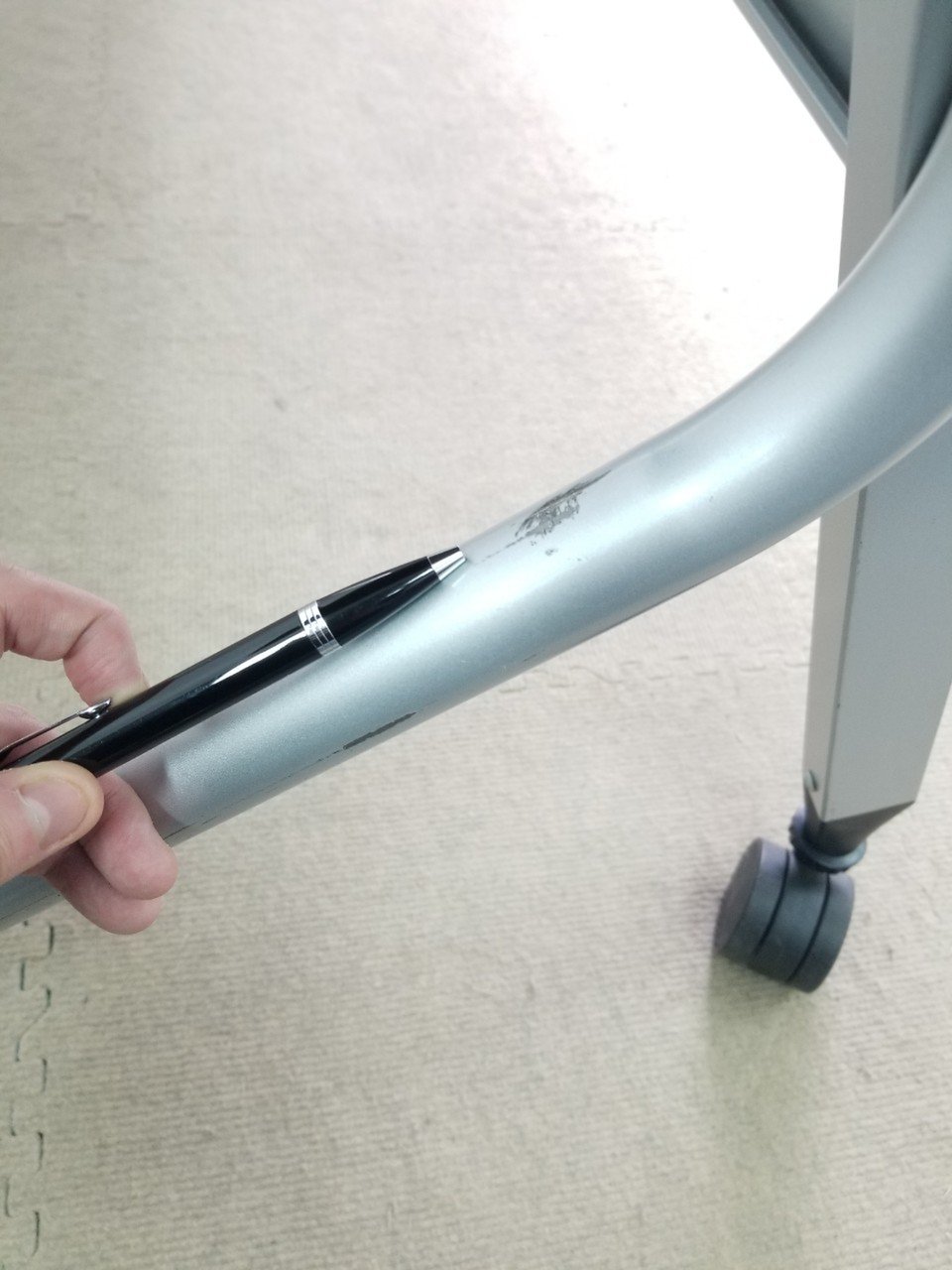 - 壊れている天板歪み、アジャスター無し、キャスター使用不可のようにそのテーブルの本来の効用を果たすための機能に不具合がある。