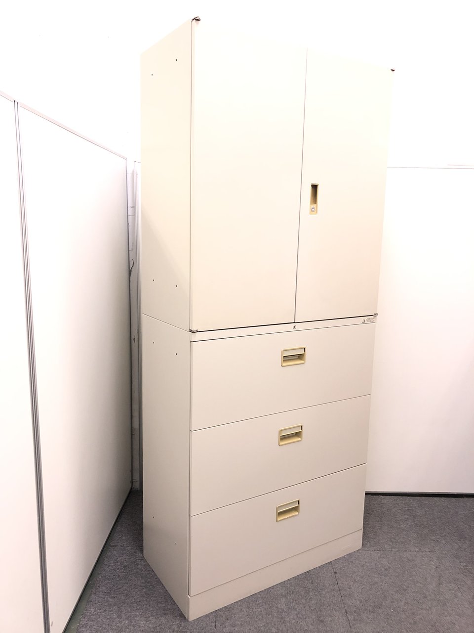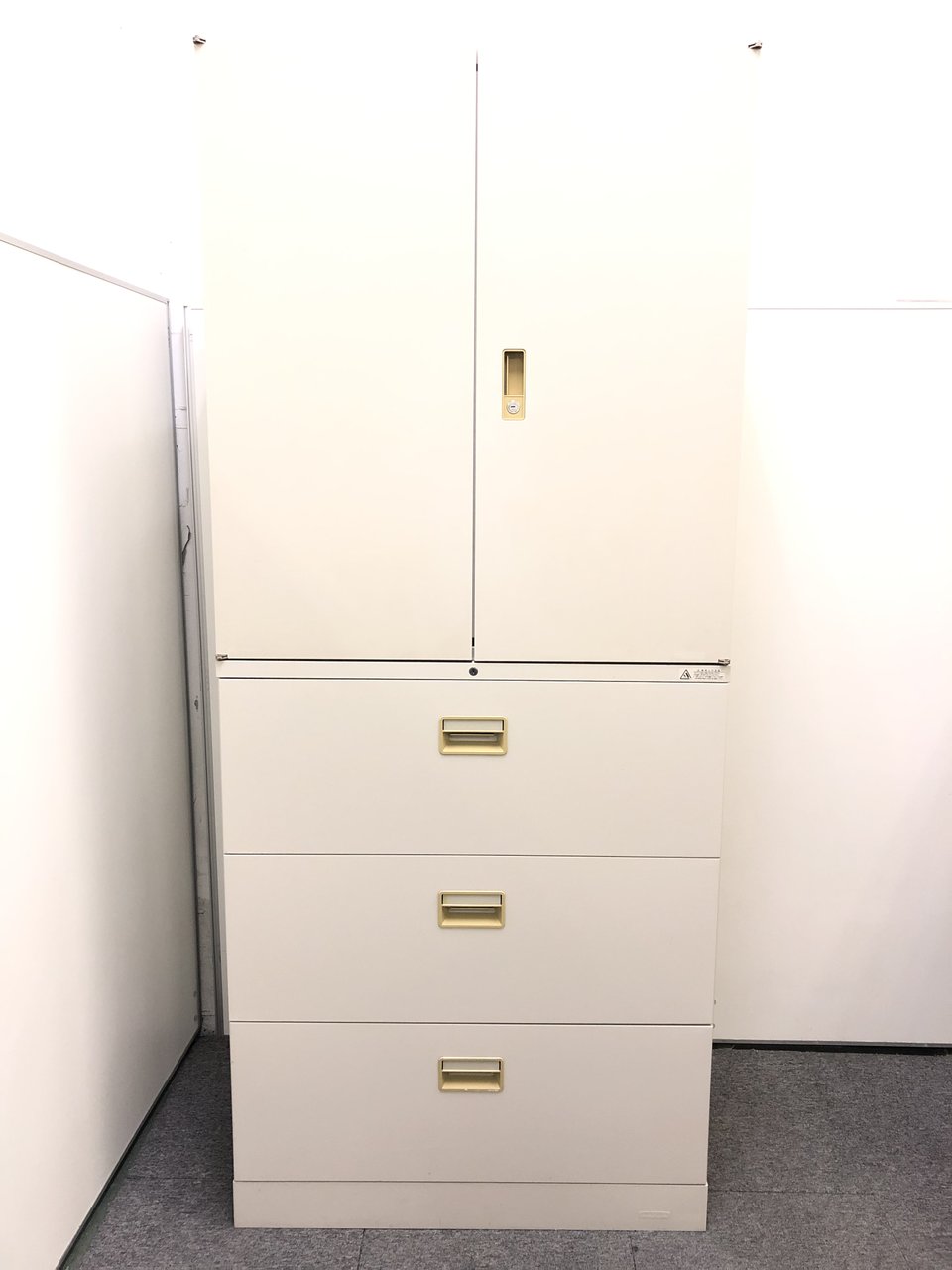 【鍵付きAランク】【迷ったらコレ!】オフィスの定番上下書庫※上段両開き&下段3段◆オカムラ製42シリーズ