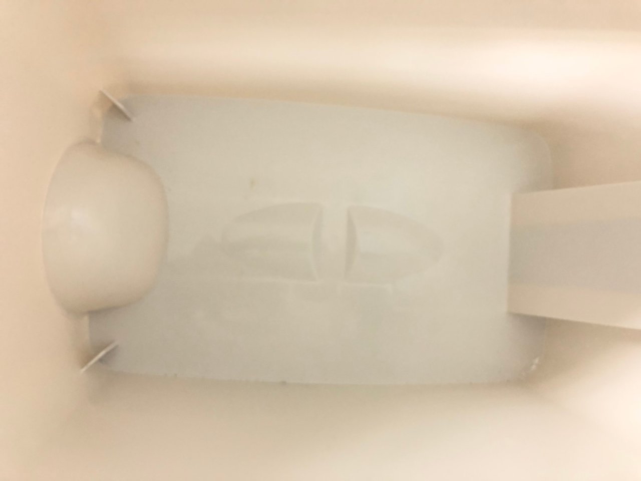 - あり黄ばみ・変色が広い範囲にうっすらある、数または濃い黄ばみ・変色が一部ある。(例、正面、背部、サイド部分にある。)