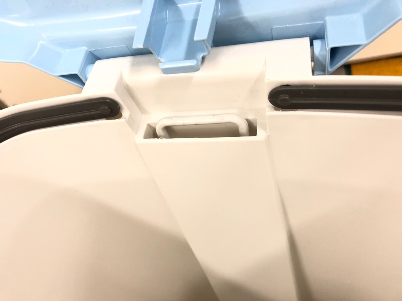 - かなり強い濃い黄ばみ・変色が商品全体にある。(例、正面、背部、サイド部分にある。)
