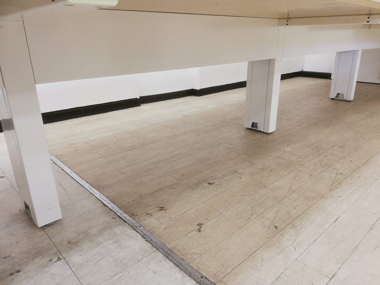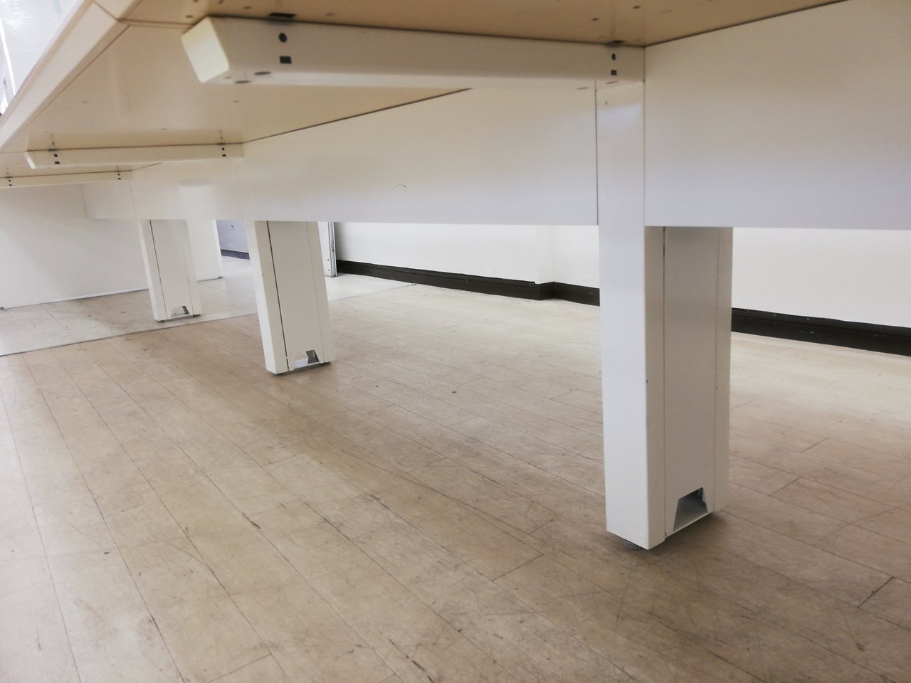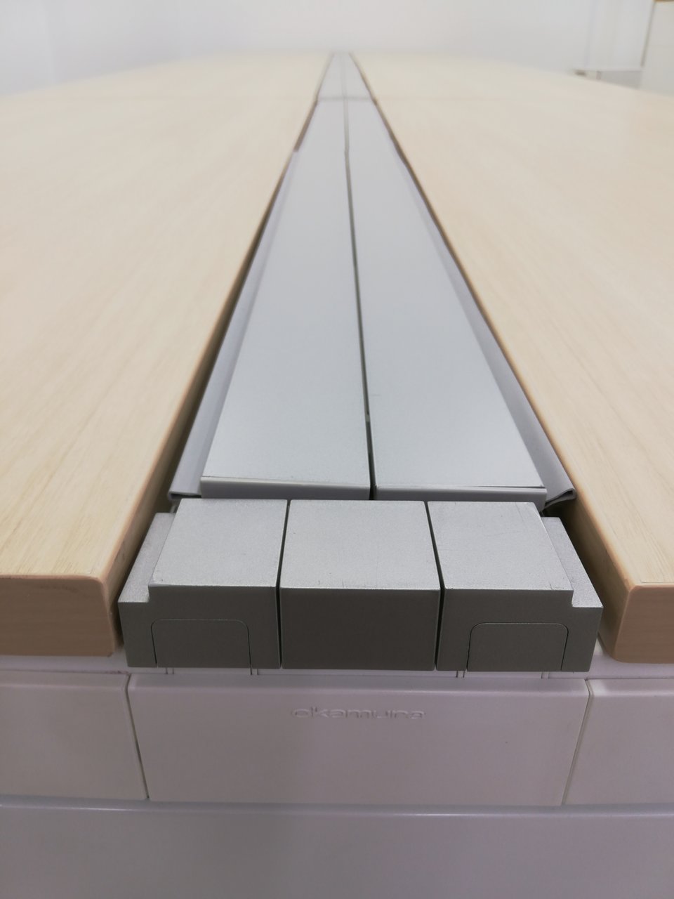 【幅5600mm】癒しナチュラル色天板!レイアウト変更おすすめフリアド※配線カバー開閉式◆オカムラ製- 春日部・越谷店