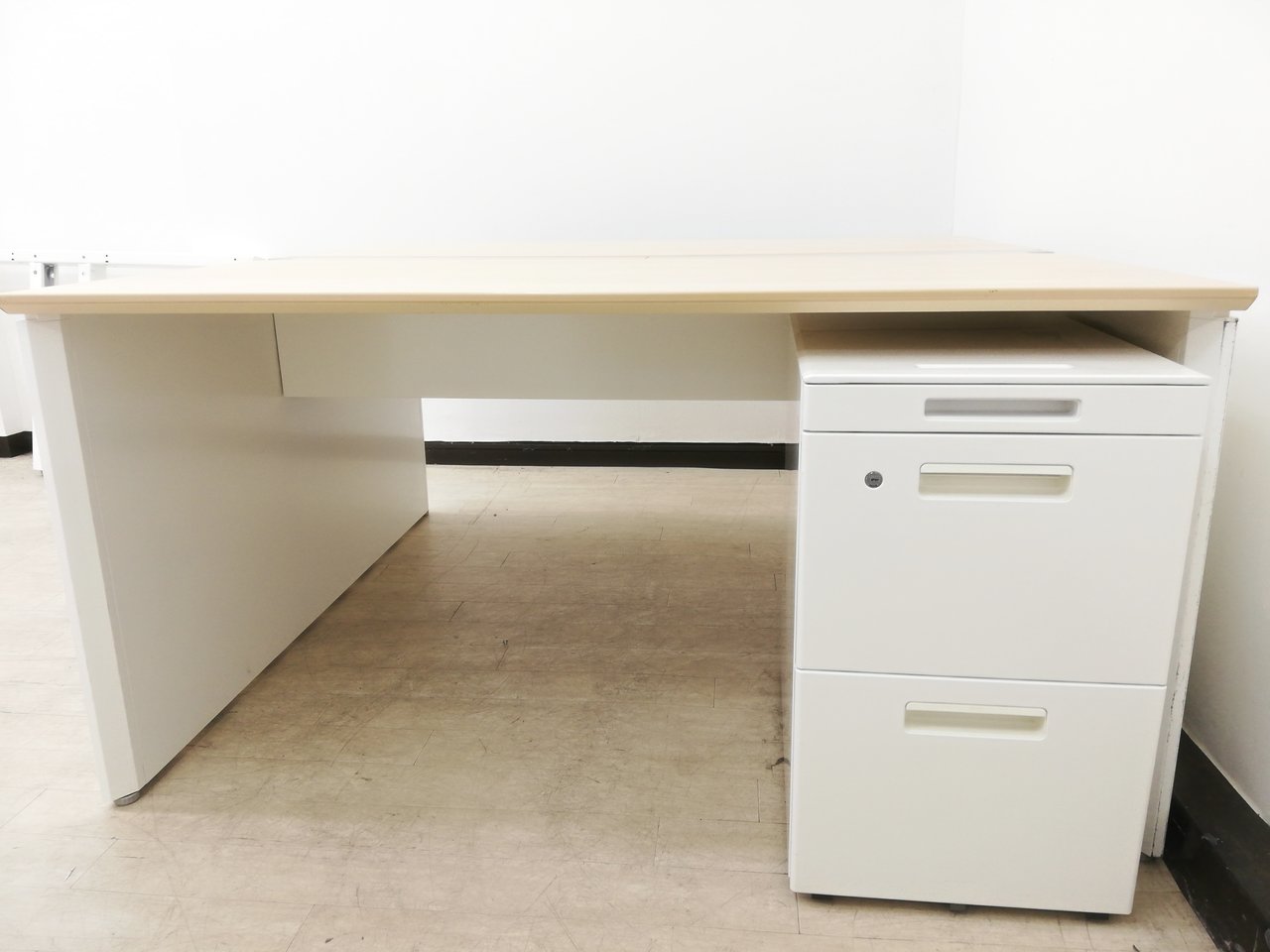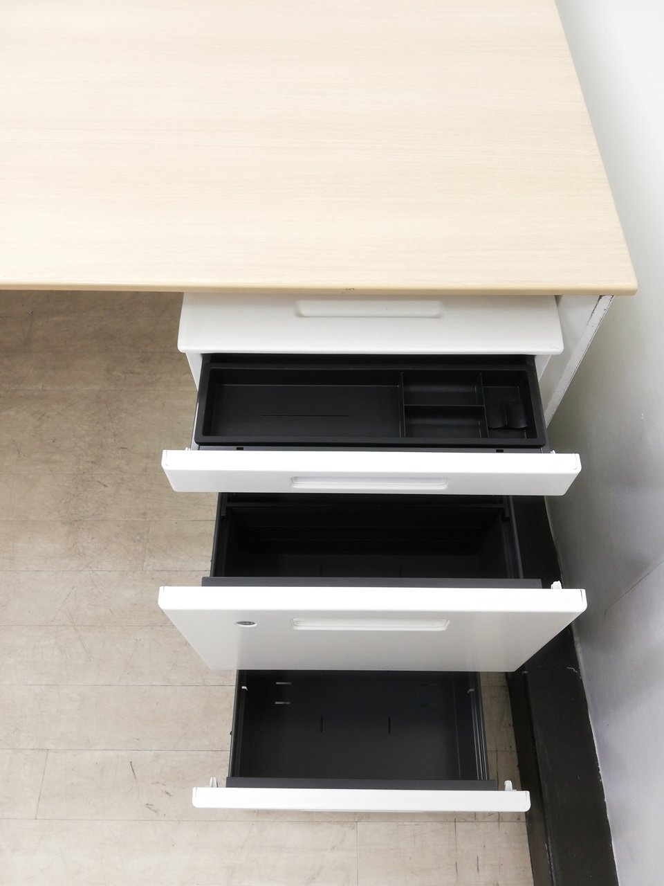 横幅1400㎜【ワゴンセット】 オカムラ製 フリーアドレスデスク フリーウェイ ナチュラル