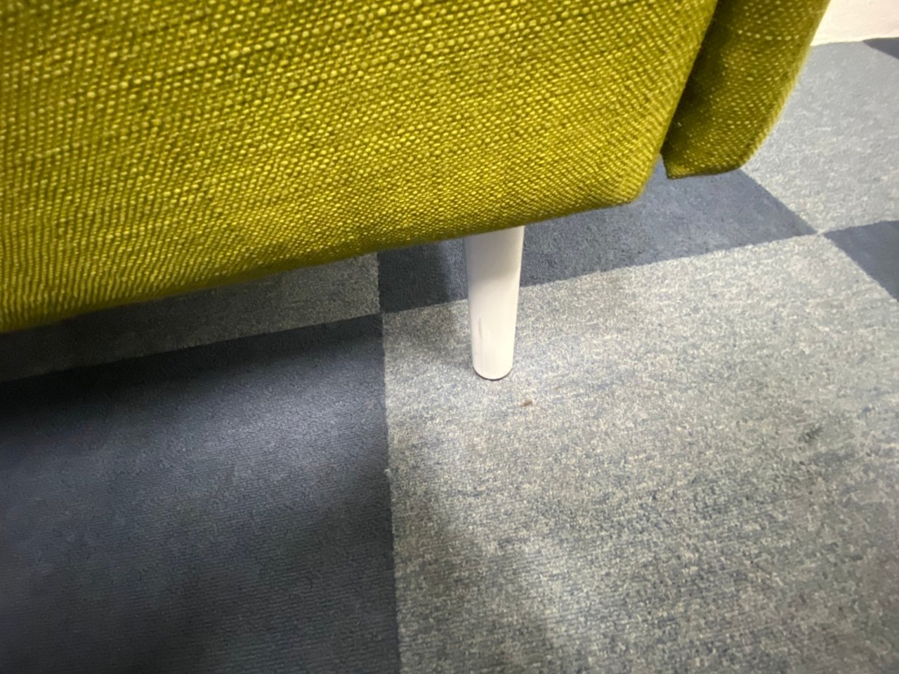 - あり黄ばみ・変色が広い範囲にうっすらある、または濃い黄ばみ・変色が一部ある。(例:三人用ソファ、二人用ソファ、一人用ソファの場合、背もたれ、肘かけ、座面等、 センターテーブルの場合、天板、脚にある。)