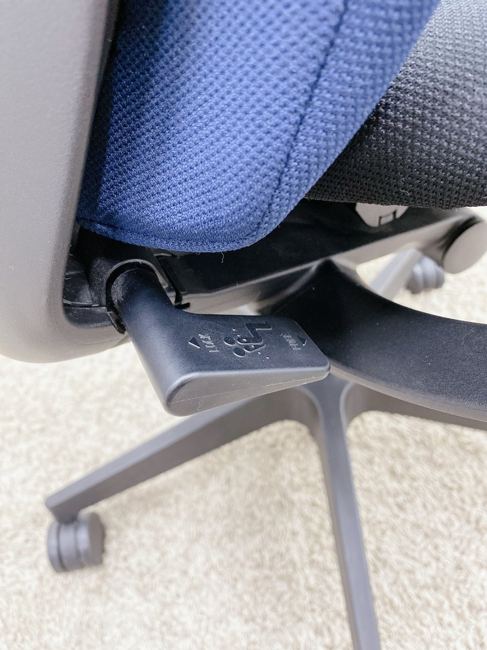 背もたれ上部の把手デザインは、張地に直接触れる必要がなく、引き出しやすく汚れにくくなっております。イトーキ製/フルゴ/ネイビー×ブラック/サーキュラーバリューCO2削減量の算出について
