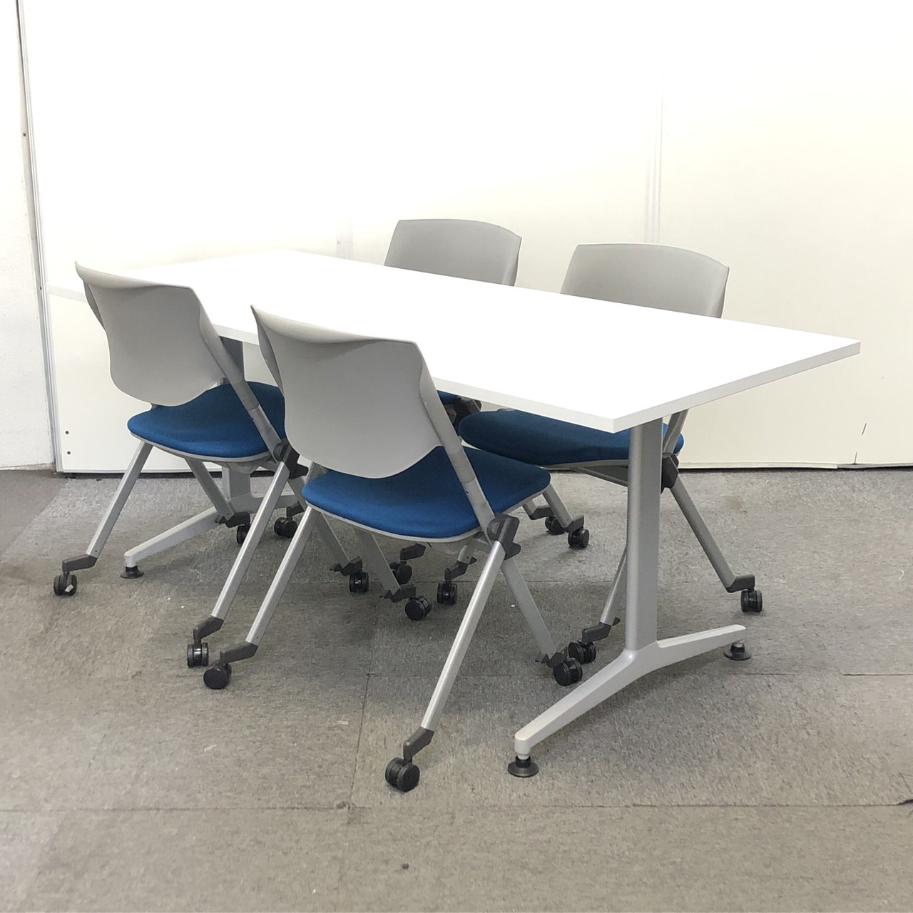 コクヨ製のホワイトカラーのミーティングテーブル+ブルーカラーのチェア4脚!!